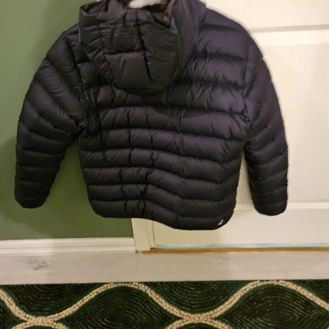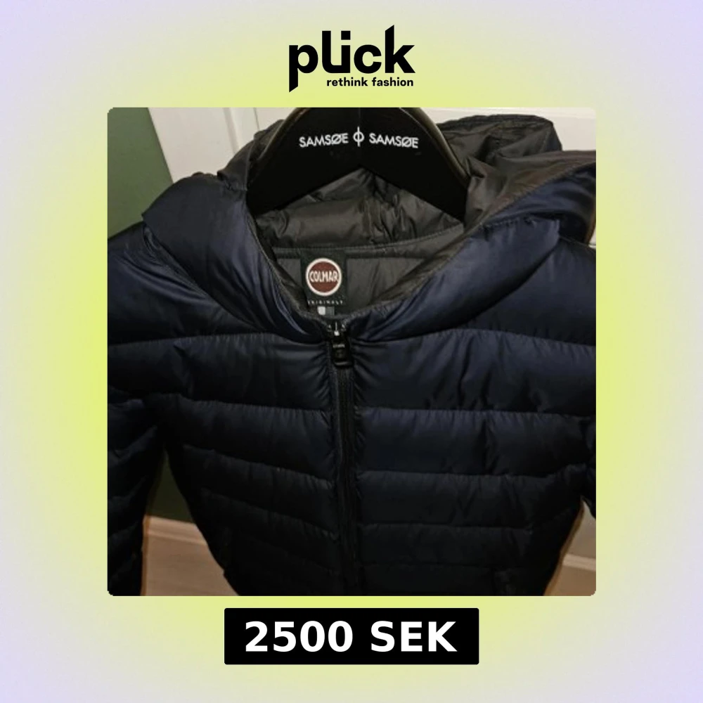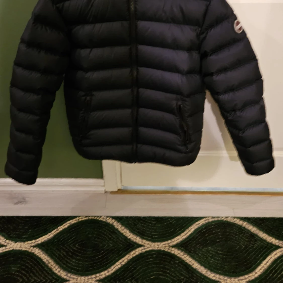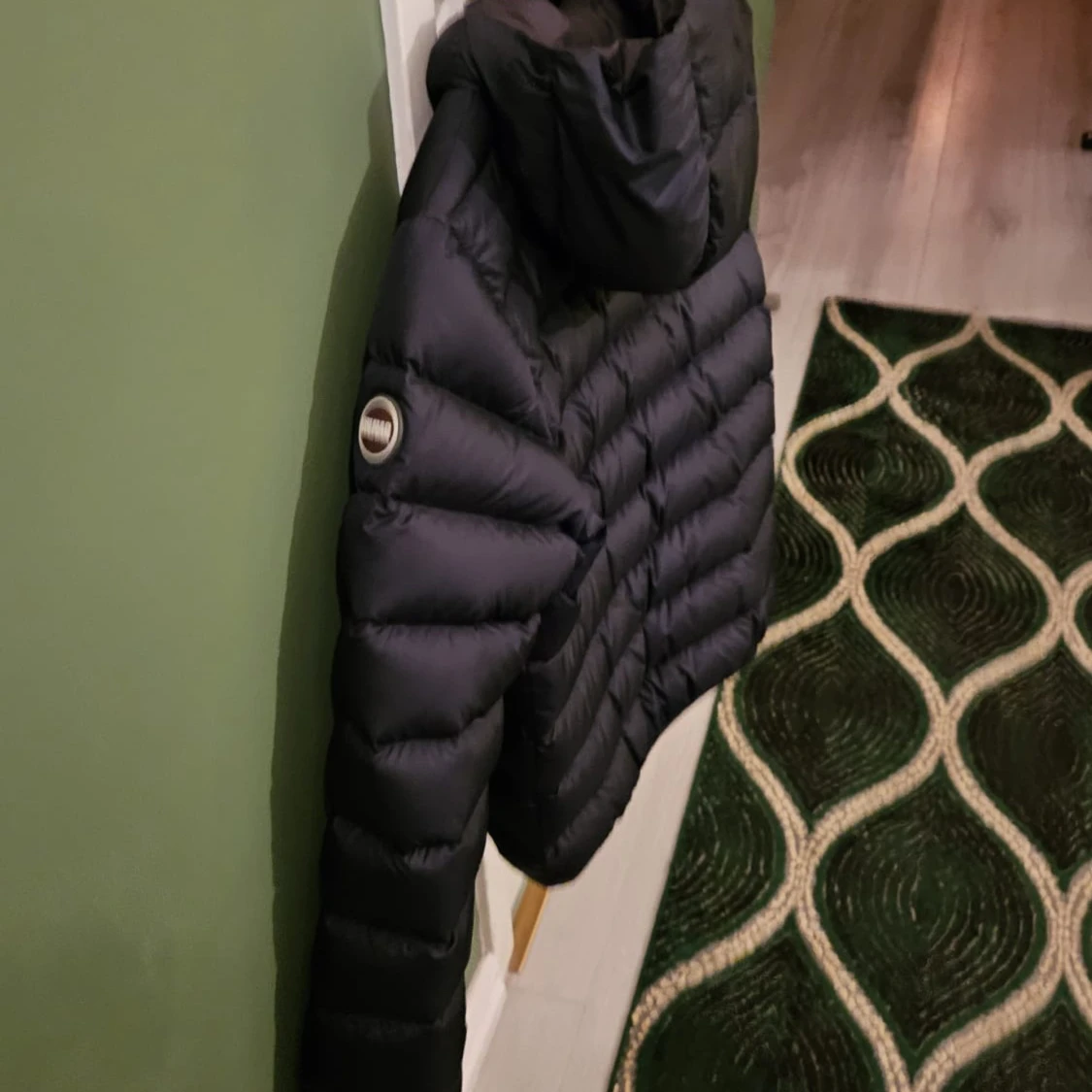 Säljer en mörkblå pufferjacka från Colmar med huva. Jackan har quiltad design, lång ärm och logotyp på ärmen. Perfekt för kalla dagar nu i hlst och vinter