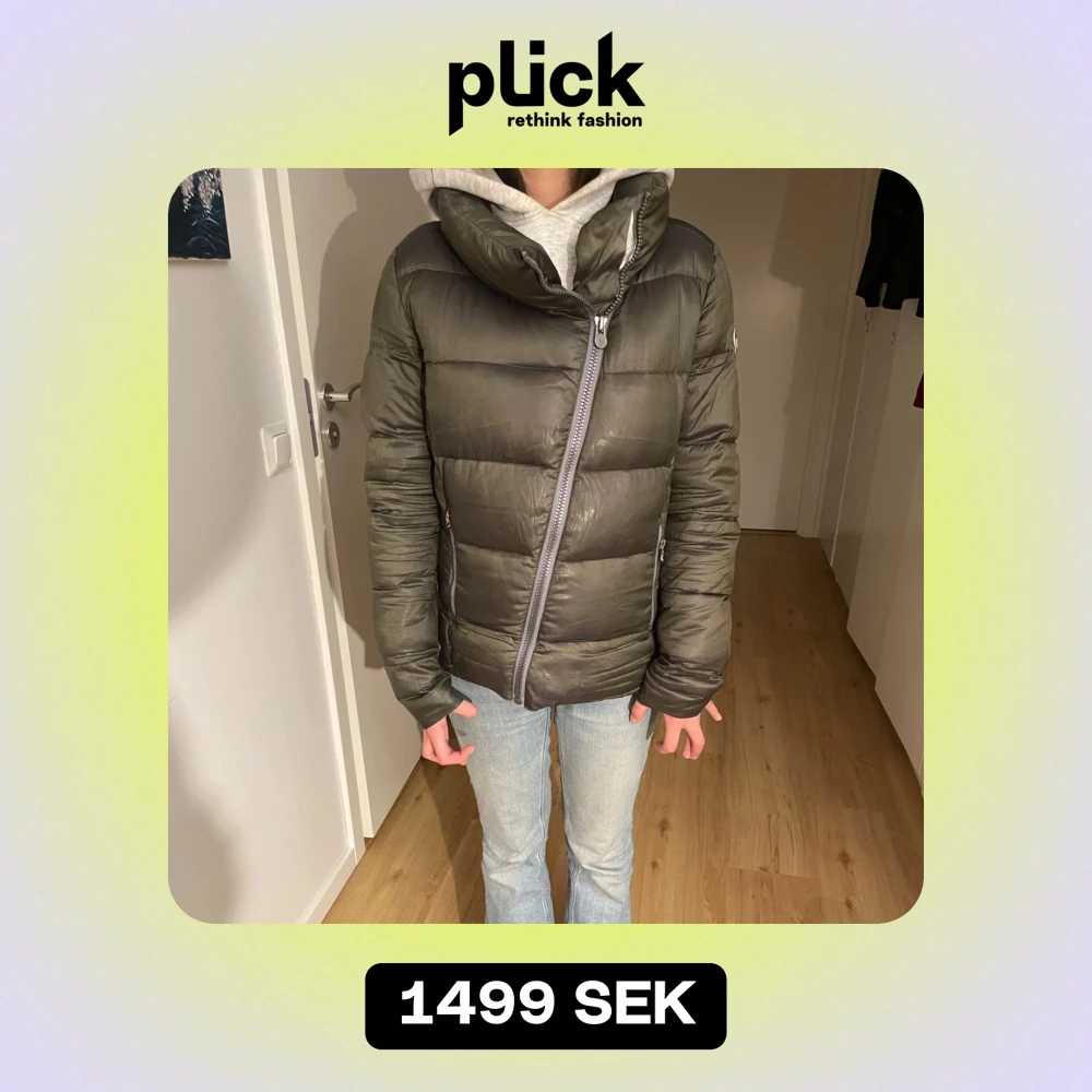 Säljer en snygg grön dunjacka från Colmar i använt skick. Jackan har en asymmetrisk dragkedja och en hög krage som skyddar mot kyla. Perfekt för höst och vinter! Den är långärmad och har en normal passform. Supermysig och stilren för kalla dagar. Lite defekt som ni ser på bilden, skriv vid frågor. Skick 7/10