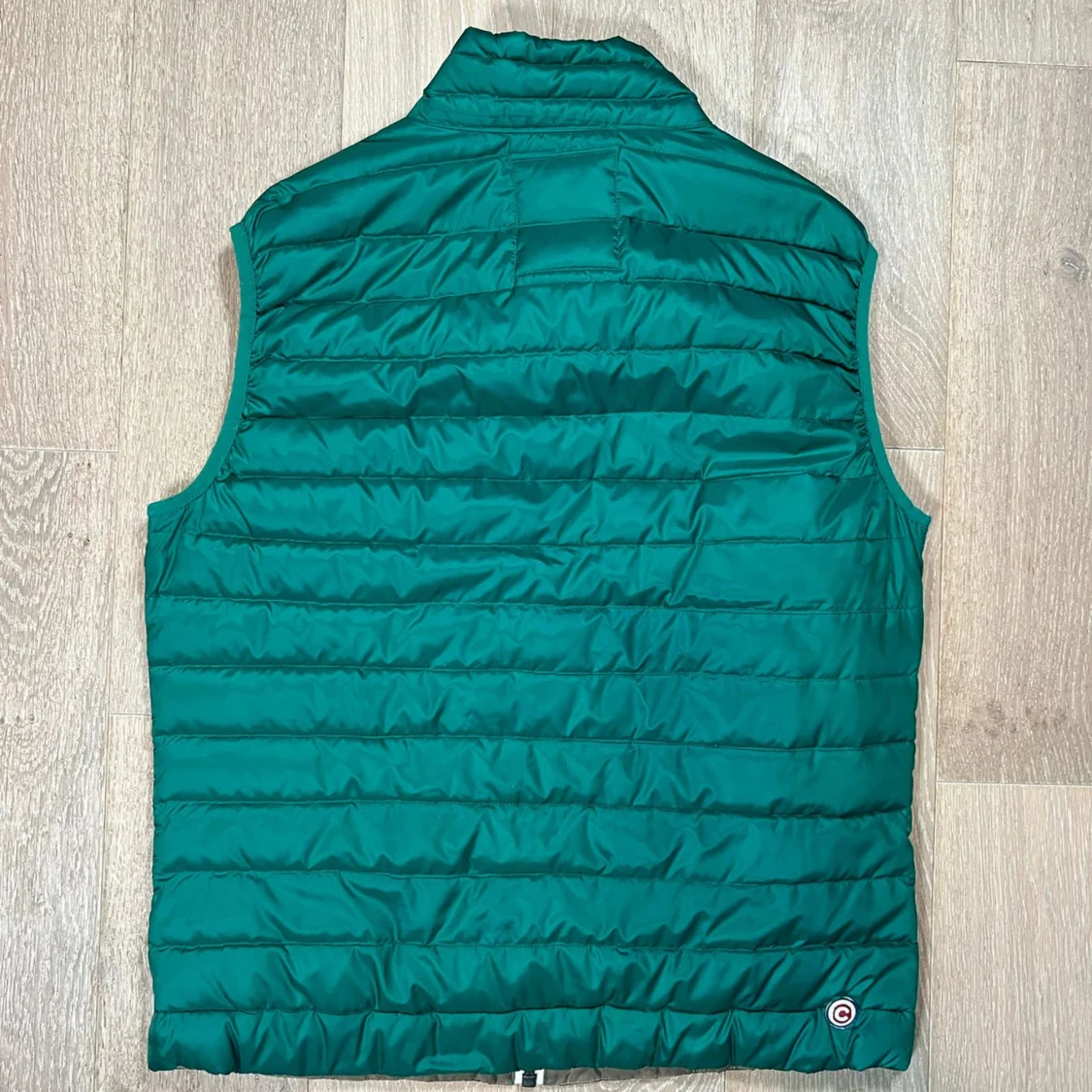 Snygg grön quiltad dunväst från Colmar med dragkedja framtill och två praktiska fickor med dragkedjor. Alla plagg vi säljer är 100% äkthets varifierade💯🙌 snygg nypris 2799kr vårt pris 999kr dunder pris storlek M (50)