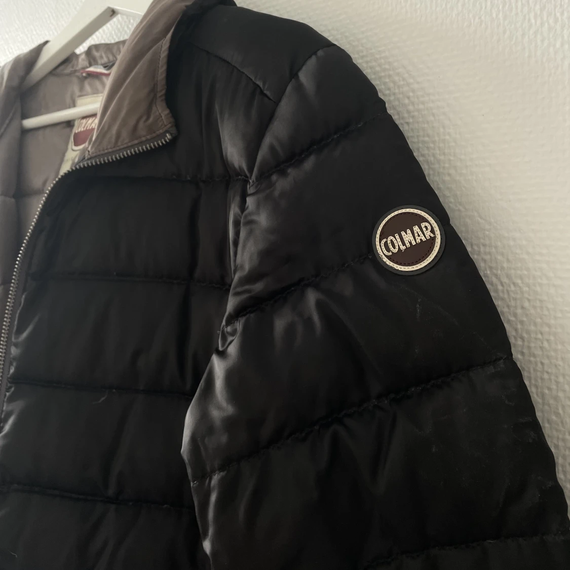 Svart dunjacka från Colmar. Jackan är i mycket fint skick förutom att blixtlåsen inte fungerar, har ej hunnit fixa den. Passar strl S/M och möjligtvis L.