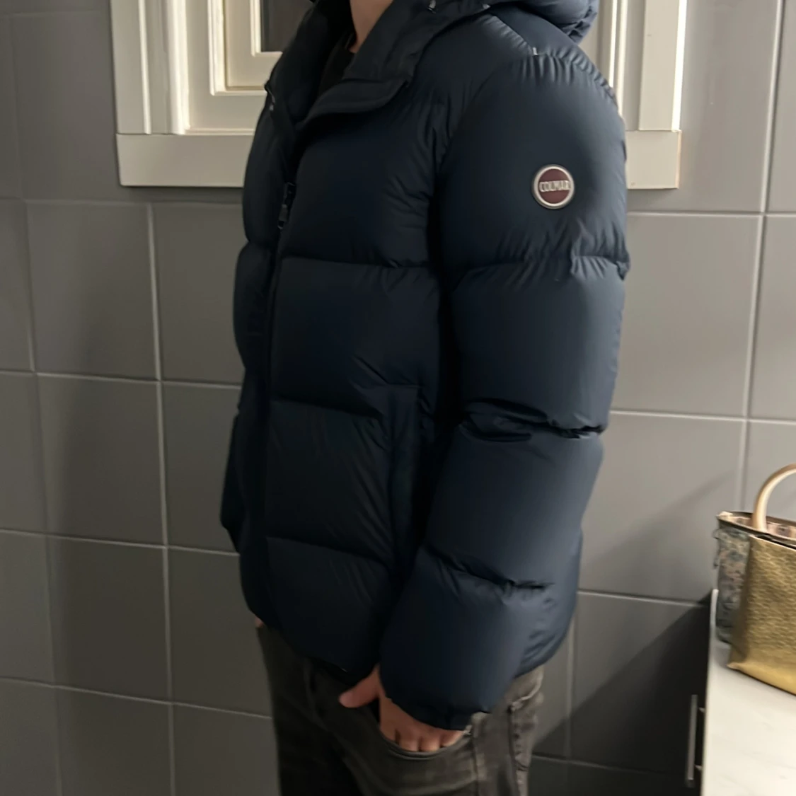 Nu säljer vi denna mörkblåa dunjacka från Colmar med huva och dragkedja framtill. Storlek 46, skick 9/10. Jackan är quiltad och har en clean, puffig look med logga på ärmen. Perfekt för kalla dagar när du vill hålla stilen och värmen. Pris kan diskuteras vid snabba för och vid fler frågor är det bara att skriva!