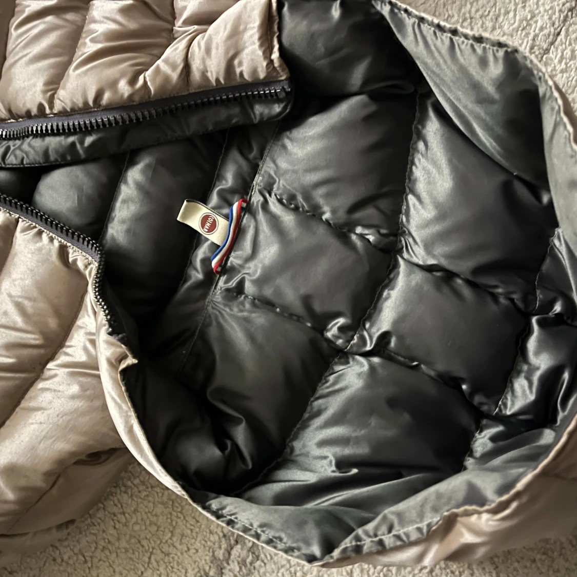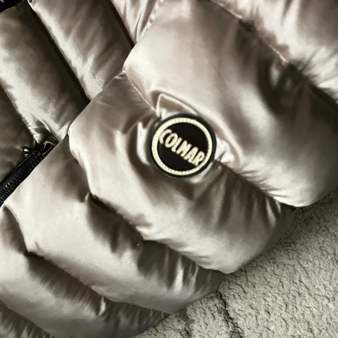 Colmar dunjacka italiensk stl 42 vilket motsvarar XS-S. Färg beige shine med grått foder. Hittar inga fel. Perfekt för höst/vinter/vår.