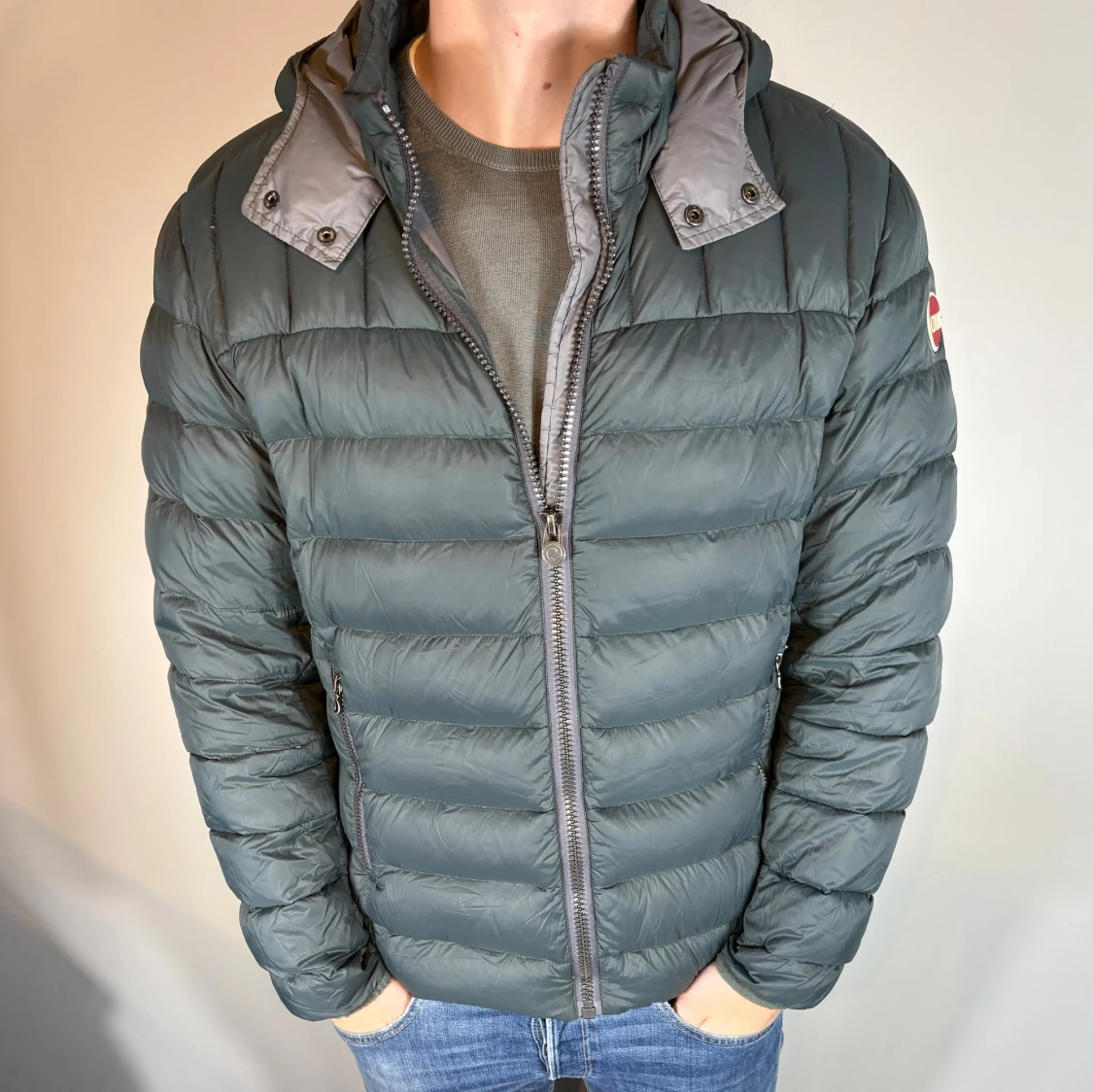En sjukt snygg och stilren dunjacka med avtagbar luva från colmar i fint skick! Passar M. Hör av er vid frågor!