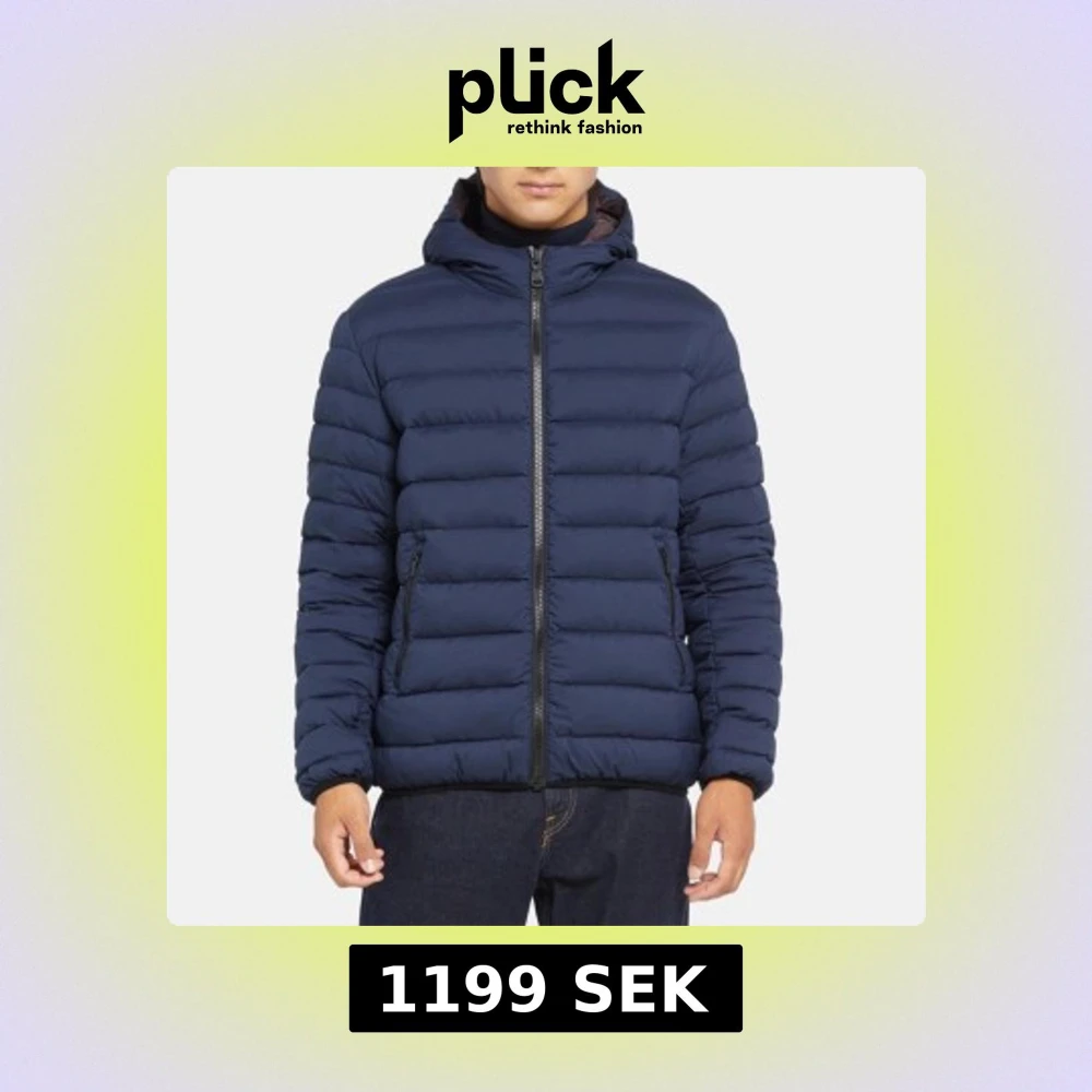 Säljer en stilren mörkblå pufferjacka med huva och dragkedja framtill. Jackan har två fickor med dragkedja och quiltad design. Perfekt för kyligare dagar och enkel att matcha med olika outfits. Den är princip ny.