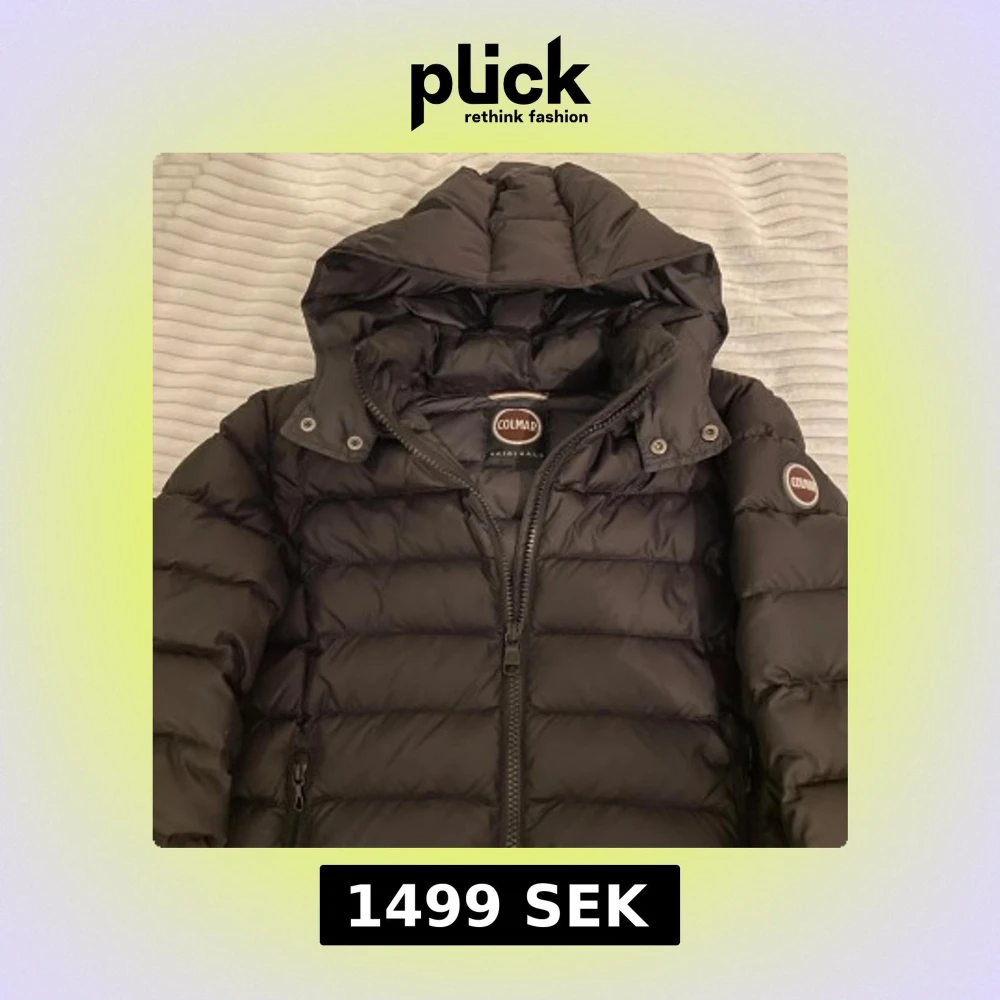 Säljer en svart pufferjacka från Colmar med huva och dragkedja. Jackan har långa ärmar och är perfekt för kyligare väder. Den är quiltad för extra värme och stil.