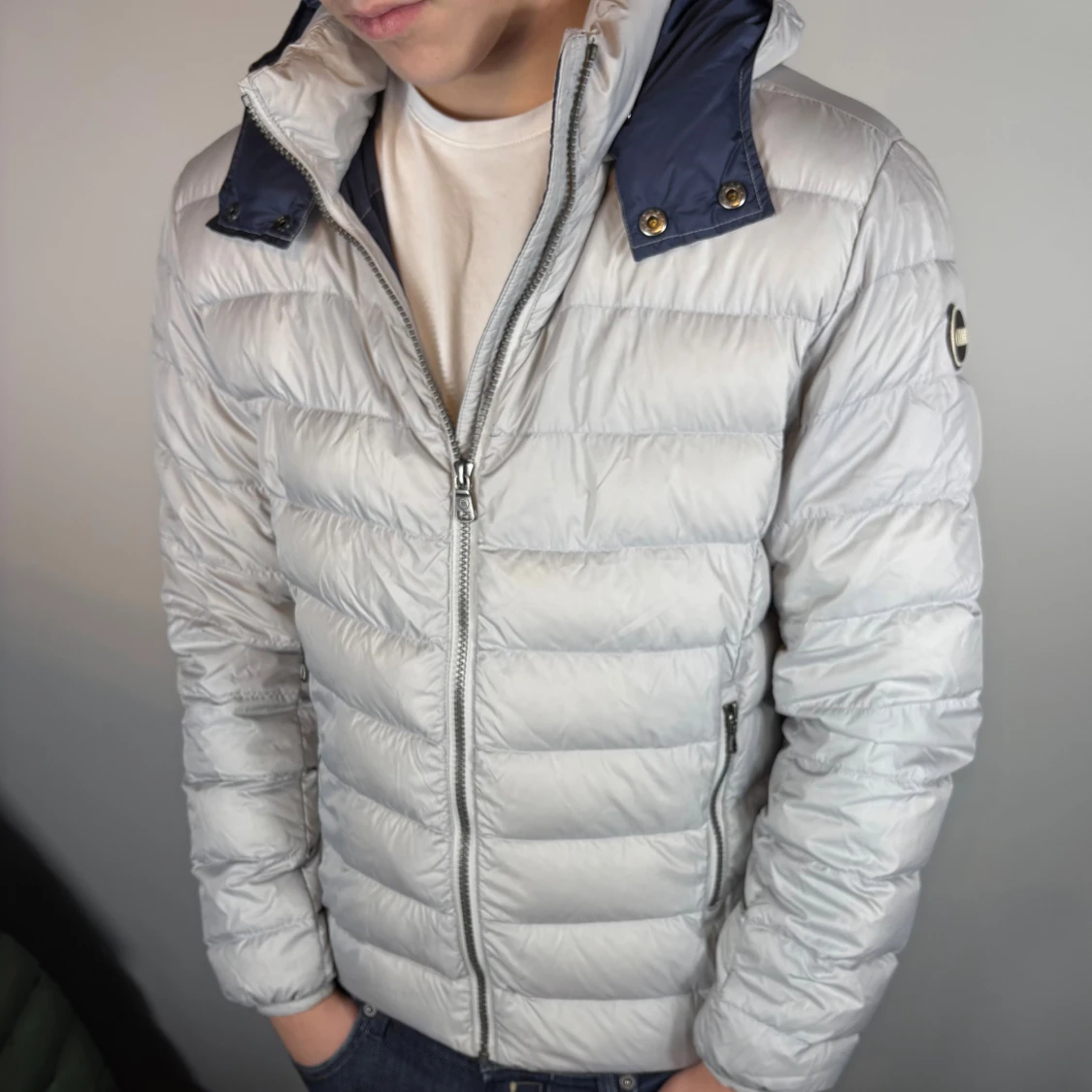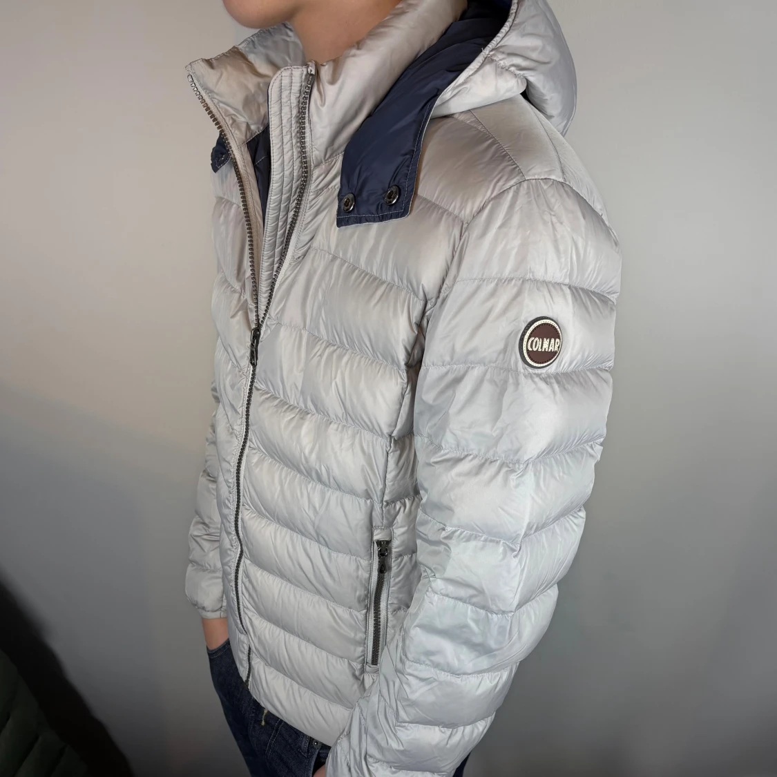En väldigt snygg dunjacka med avtagbar luva från colmar i väldigt bra skick! Passar S. Hör av er vid frågor!