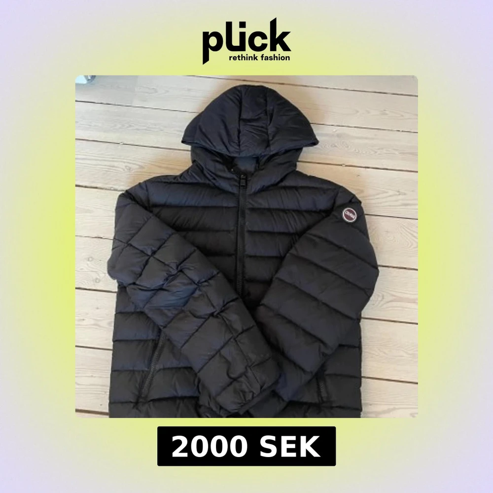Svart dunjacka från Colmar med huva och dragkedja framtill. Jackan har quiltad design, två sidofickor med dragkedja och en rund logotyp på ärmen. Jackan är i bra skick men med lite skada på baksidan av jackans resårband som inte syns när du använder den. Pris kan diskuteras vid snabb affär