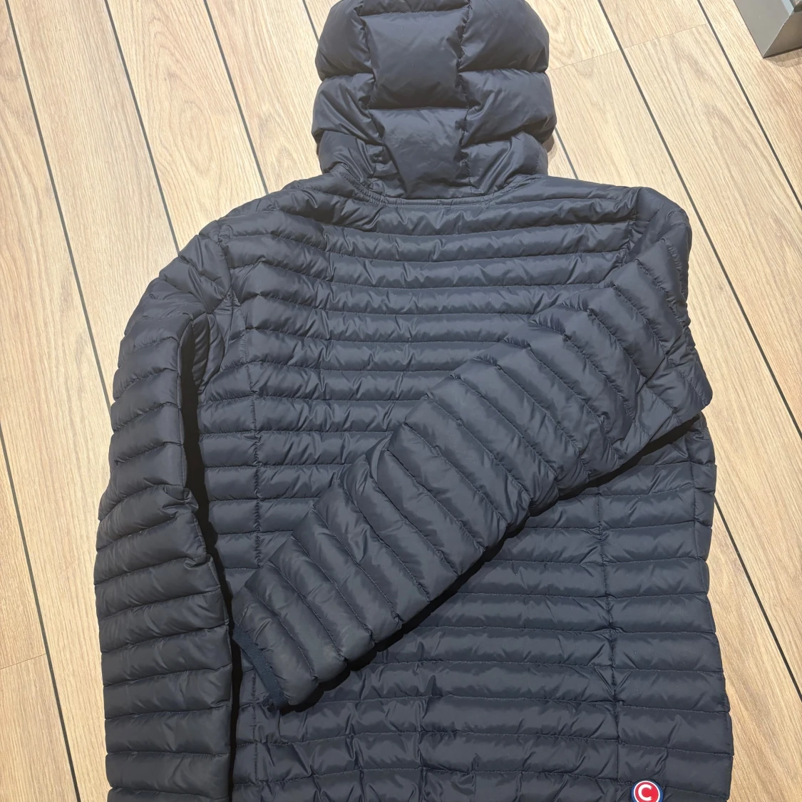 Jättefin lightweight Colmarjacka säljes i nyskick. Den tunnare modellen som passar vår/sommar/höst. Ankdun. Storlek: 16Y/172 cm(passar längd 165-175 ca), motsvarar damstorlek 38/40. Mörkblå med ljusblått innerfoder.