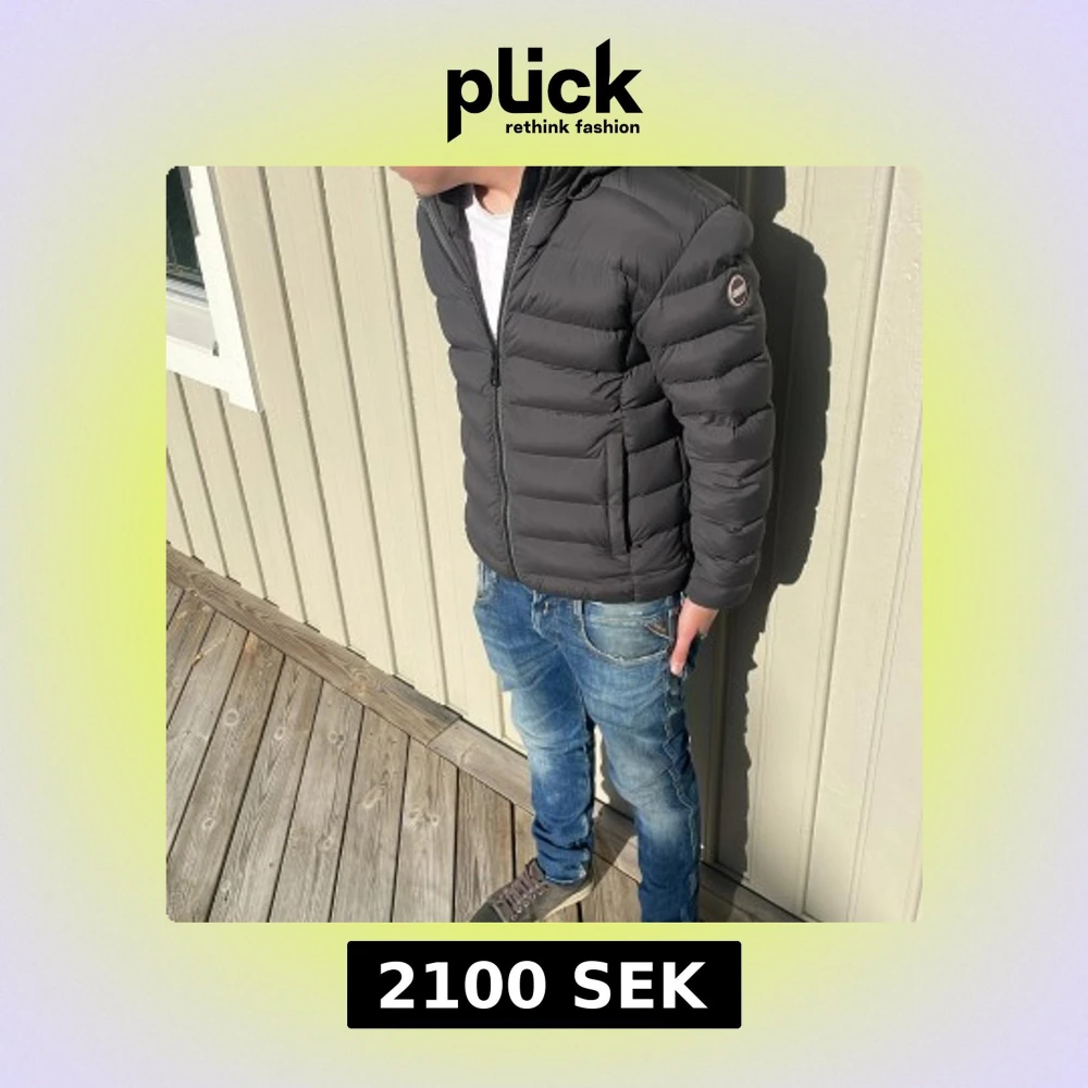 Säljer en svart pufferjacka från Colmar med huva och dragkedja framtill. Jackan har ett stilrent, quiltat mönster och logotyp på ärmen. Perfekt för kyliga dagar och ger en clean look till jeans och sneakers.