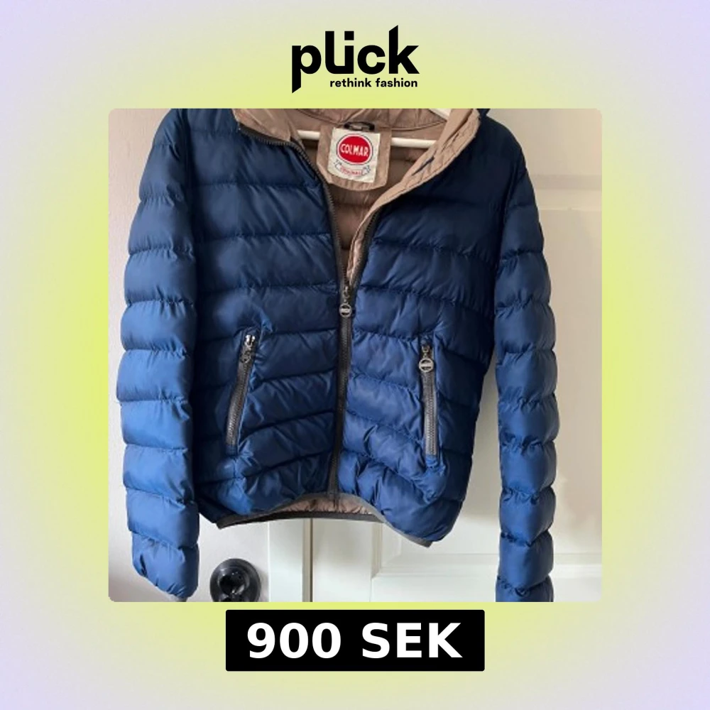 Säljer en snygg blå pufferjacka från Colmar med beige insida och huva. Jackan har två dragkedjeförsedda fickor framtill och en cool logga på ärmen. Perfekt för kyliga dagar och riktigt skön att bära. Passar dig som gillar stilren och sportig look. Pris kan diskuteras