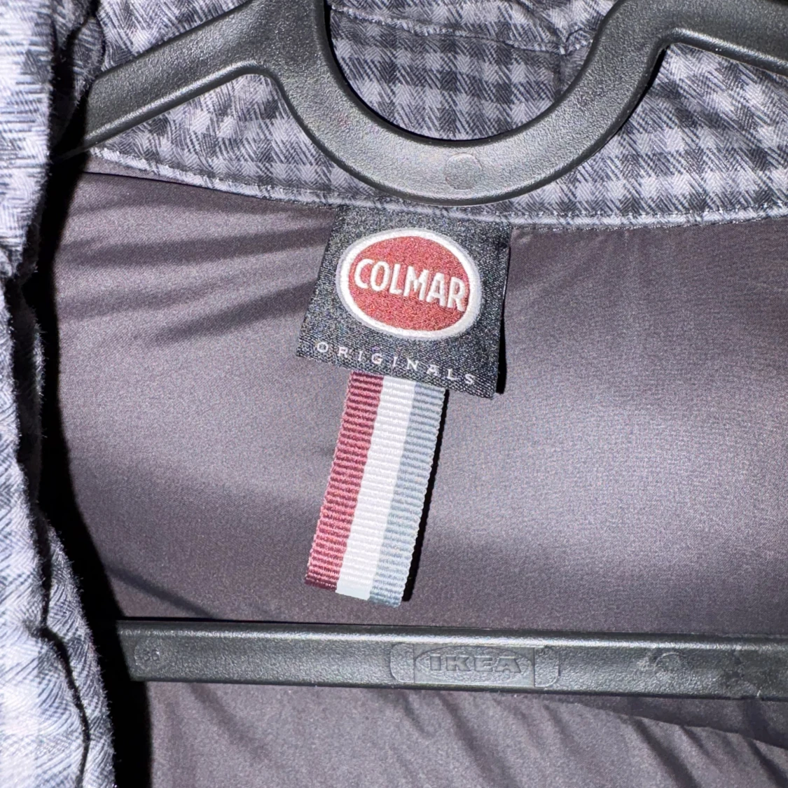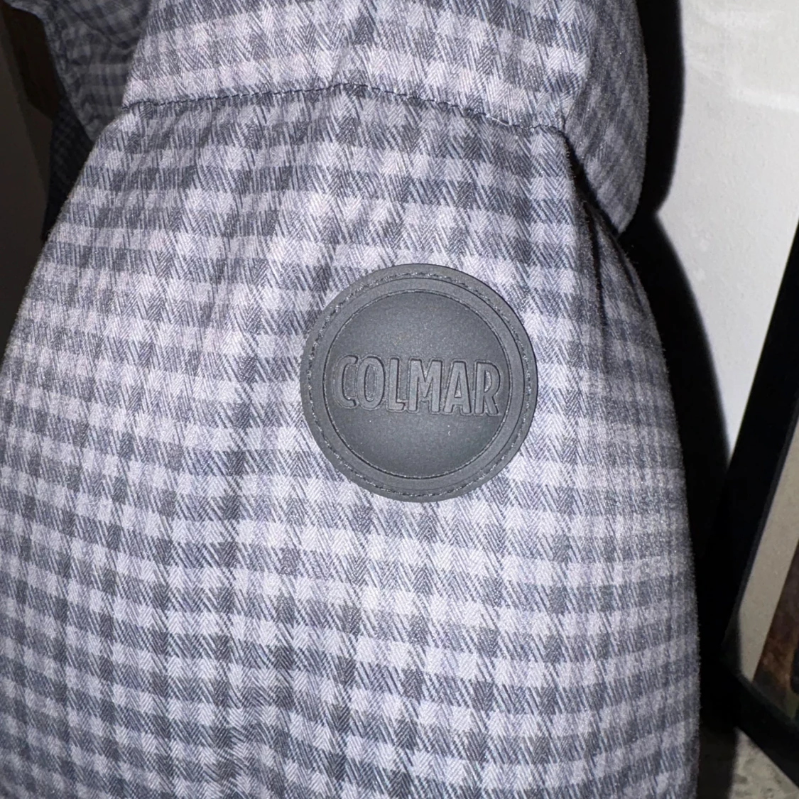 Snygg pufferjacka från Colmar i grått med rutigt mönster. Jackan har hög krage, stora fickor och knappar framtill. Perfekt för dig som vill ha en varm och trendig jacka med streetkänsla. Colmar-logga på ärmen ger extra stilpoäng. Ny pris ca 5 6 tusen