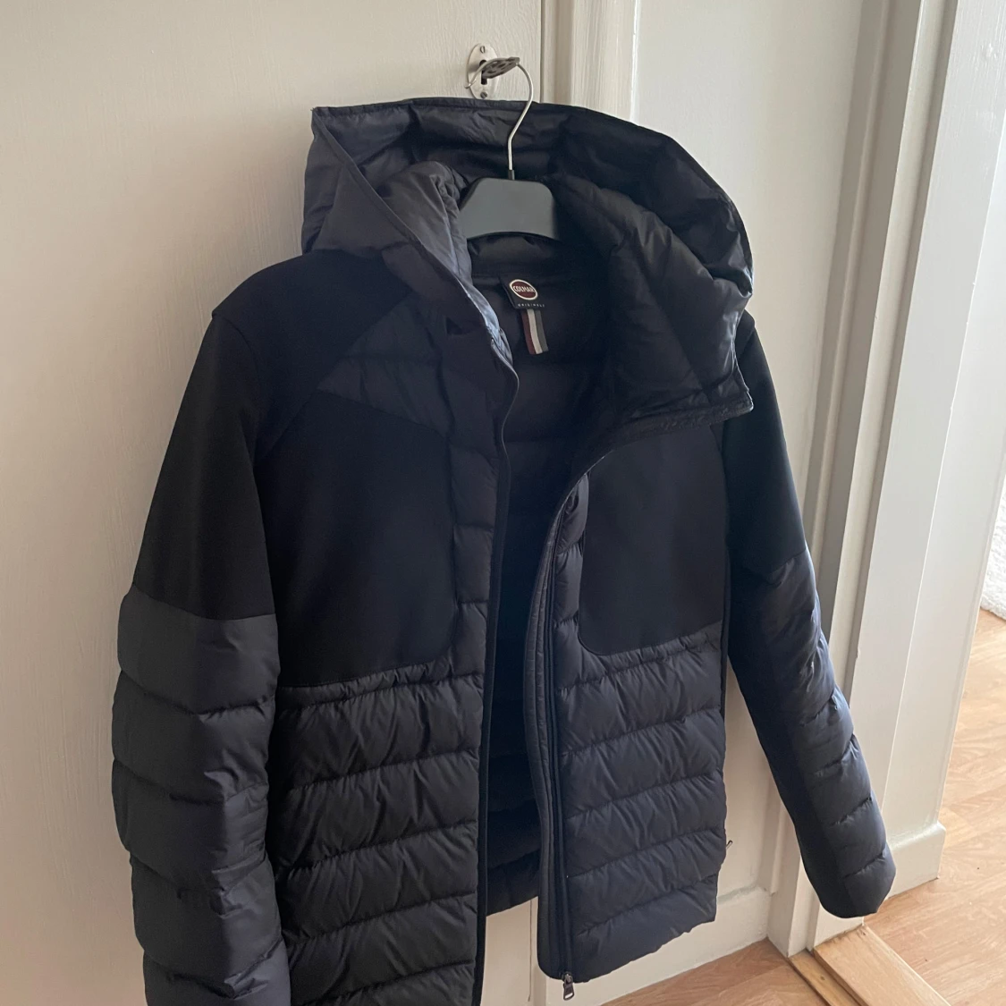 Säljer en snygg svart pufferjacka från Colmar. Den är perfekt för kalla dagar med sin vadderade design och har en praktisk dragkedja framtill. Jackan har en stilren look med en liten logga på ärmen. Perfekt för både vardag och vinteräventyr! 🖤ny pris 5000kr mitt pris 2300kr billigare vid snabb affär! Använder förra vintern ca 3 månader.