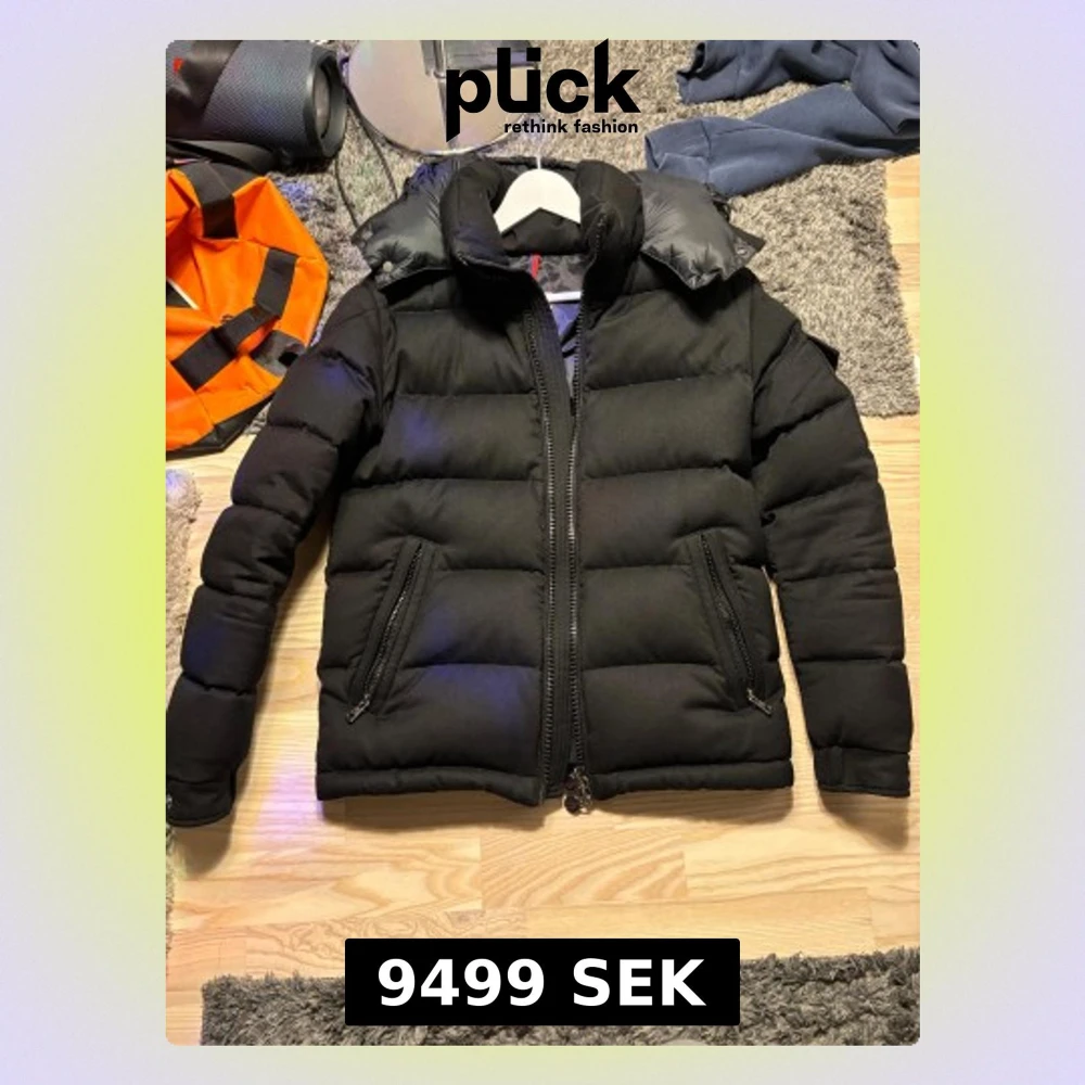 Super bra julklapp pris går att diskuteras.Jackan är som ny inga defekter med kvitto Super fin och super kvalité Svart pufferjacka från Moncler med hög krage och två sidofickor med dragkedja. Jackan har quiltad design och dubbla dragkedjor med Moncler-logga. Materialet är polyester och dun, perfekt för kalla dagar. Snygg och stilren look som funkar till allt.