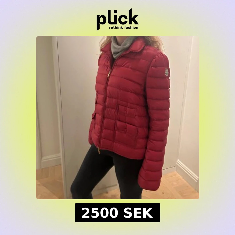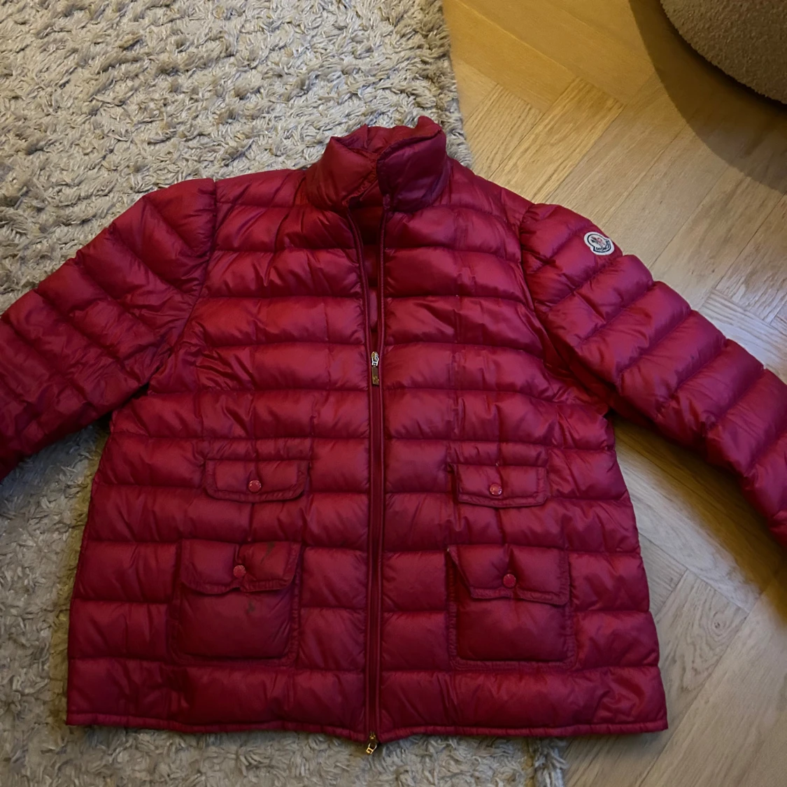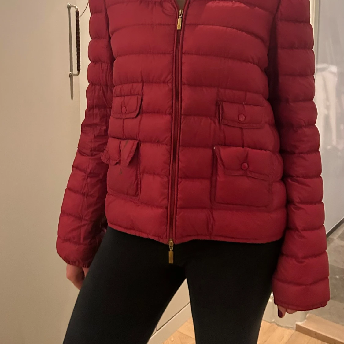 Snygg vinröd dunjacka från Moncler med dragkedja och två fickor framtill. Jackan har en quiltad design och långa ärmar, perfekt för kyligare dagar. Den har en klassisk passform och Moncler-logga på ärmen. Köpt för ett tag sedan på nk. Mycket unik och fin färg till vår och höst. Storlek 3 vilket motsvarar ungefär S/M🥰🥰pris kan diskuteras vid snabbköp och ÄR ÖPPEN FÖR BYTEN