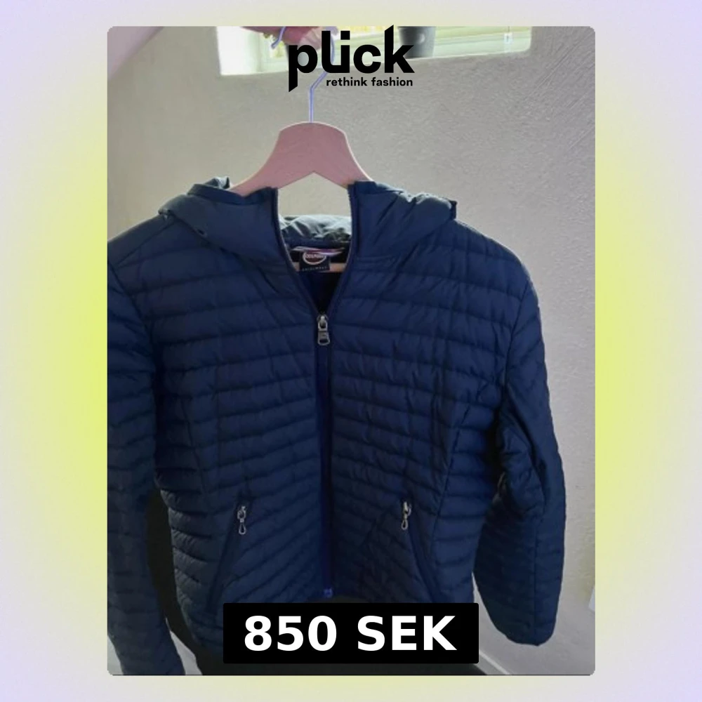 Snygg mörkblå dunjacka från Colmar med huva. Jackan har två sidofickor med dragkedja och hel dragkedja framtill. Perfekt för kyliga dagar och har en stilren look som funkar till många outfits. Gammal model där av inte identisk därav mitt pris, inga defekter!
