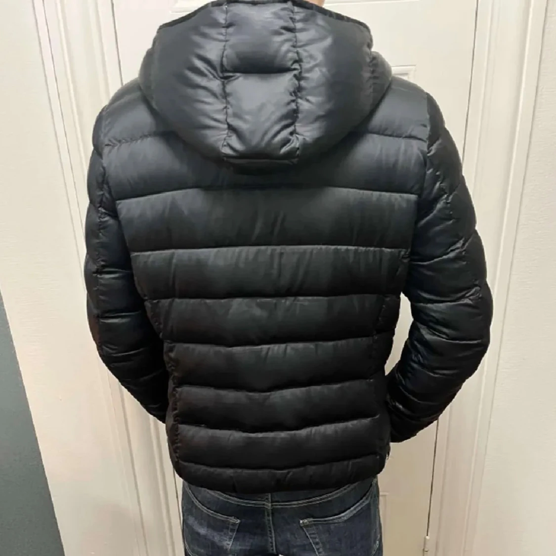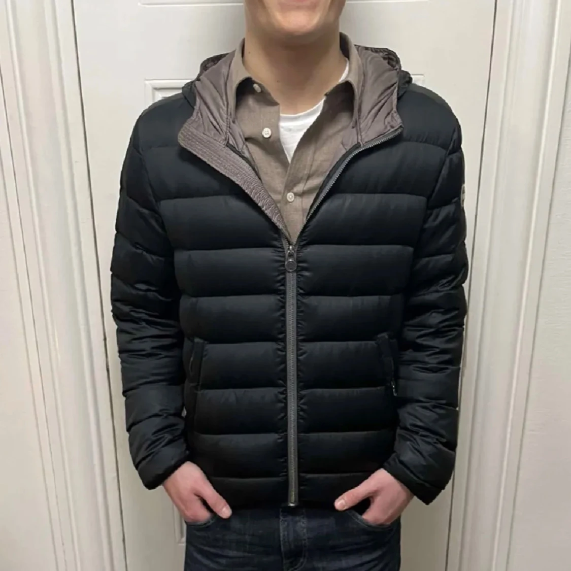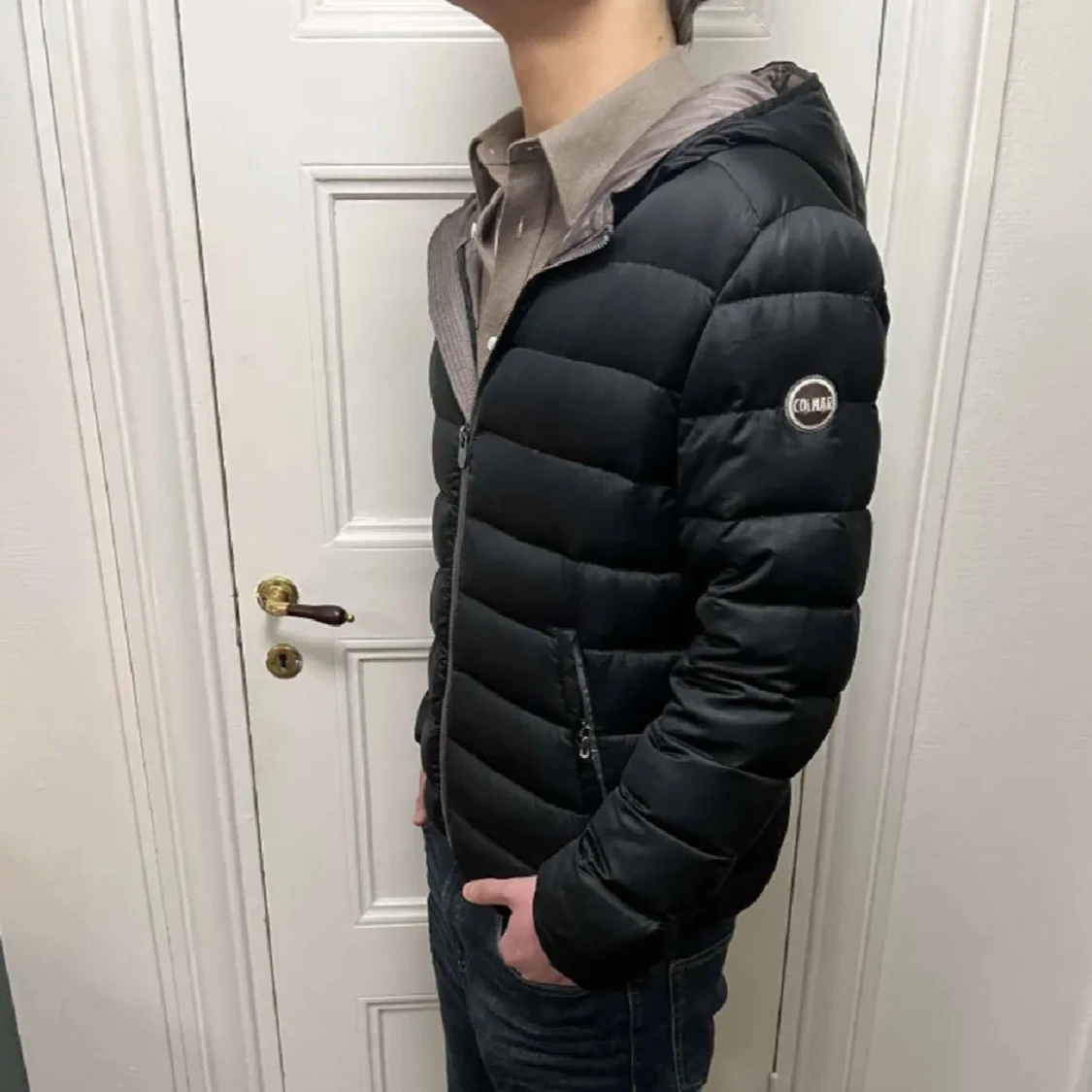 Svart dunjacka från Colmar med huva och dragkedja framtill. Jackan har quiltad design, två fickor med dragkedja och en diskret logotyp på ärmen. Perfekt för kyliga dagar och har en stilren, sportig look. Ena framfickan går inte att stänga.