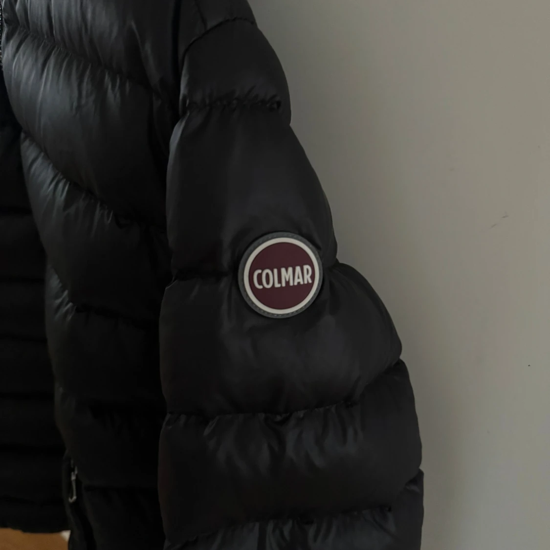 Snygg svart dunjacka från Colmar med glansig finish och huva. Jackan har en klassisk pufferstil, dragkedja framtill och två fickor med dragkedja. Märkeslogga på ärmen ger en clean och sportig vibe. Perfekt för kalla dagar när du vill hålla stilen.