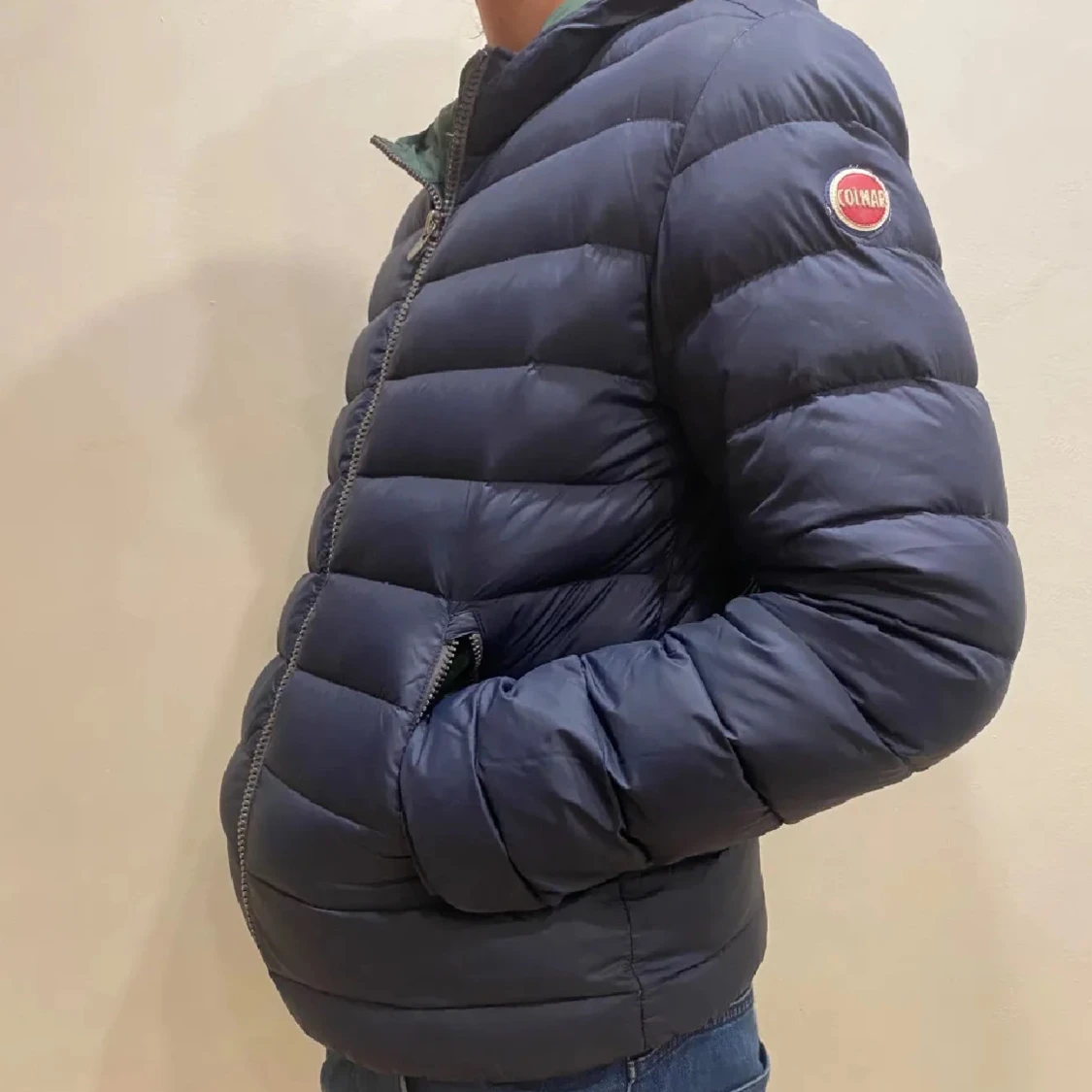Säljer en snygg blå dunjacka från Colmar med dragkedja framtill. Jackan har en quiltad design och långa ärmar. Perfekt för kyliga dagar. 🧥