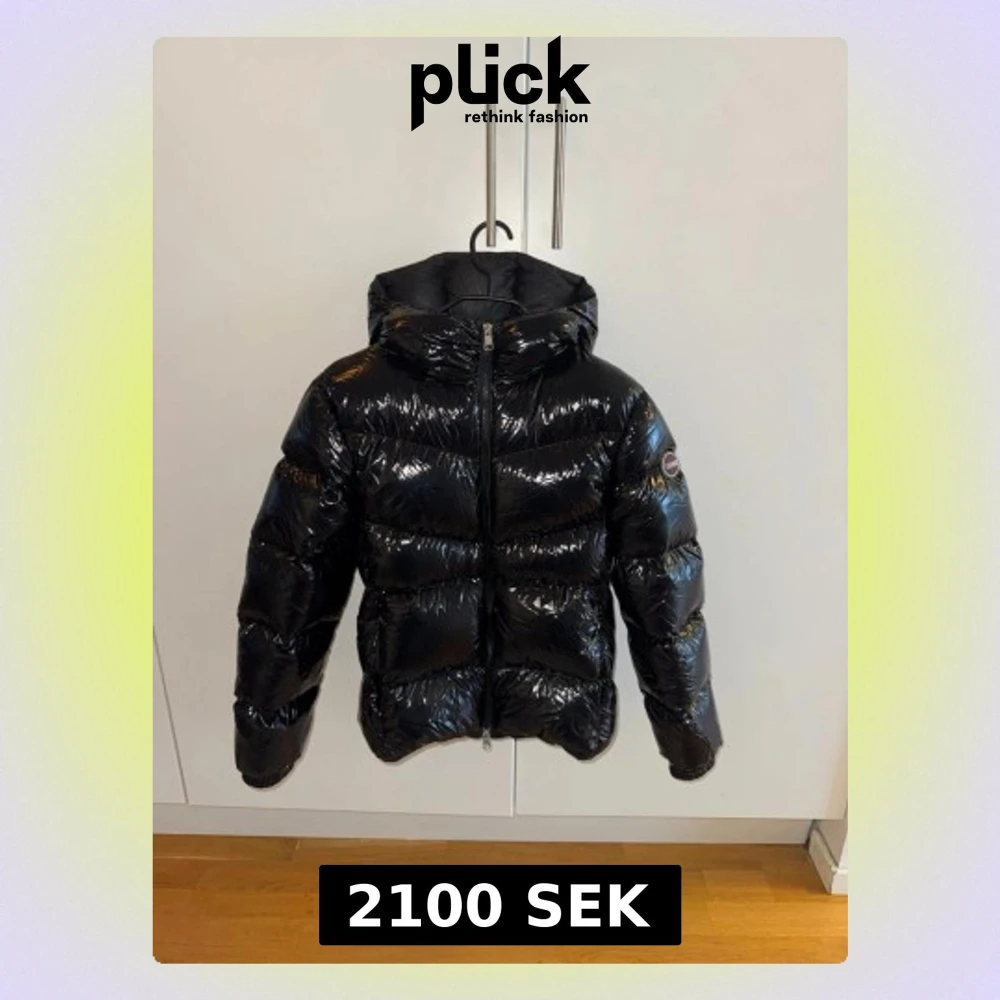 Säljer en svart, glansig pufferjacka från Colmar med huva och dragkedja framtill. Jackan har ett stilrent, quiltat mönster och logotyp på ärmen. Perfekt för dig som vill ha en varm och snygg jacka med modern vibe.