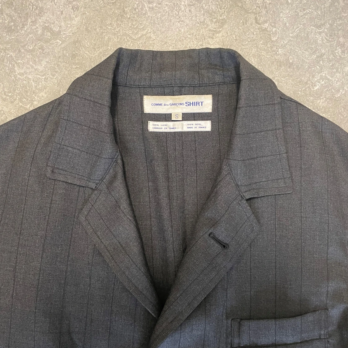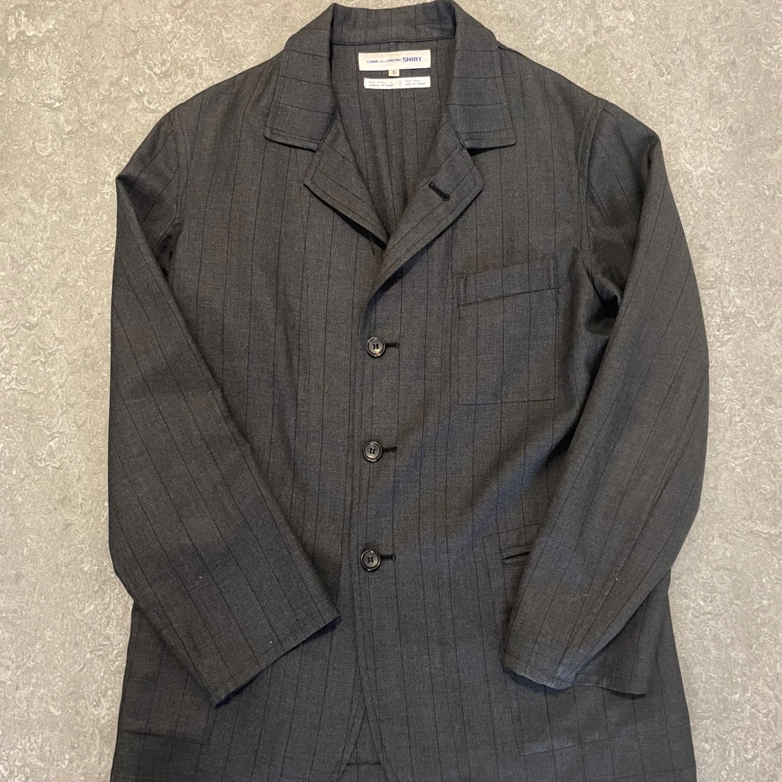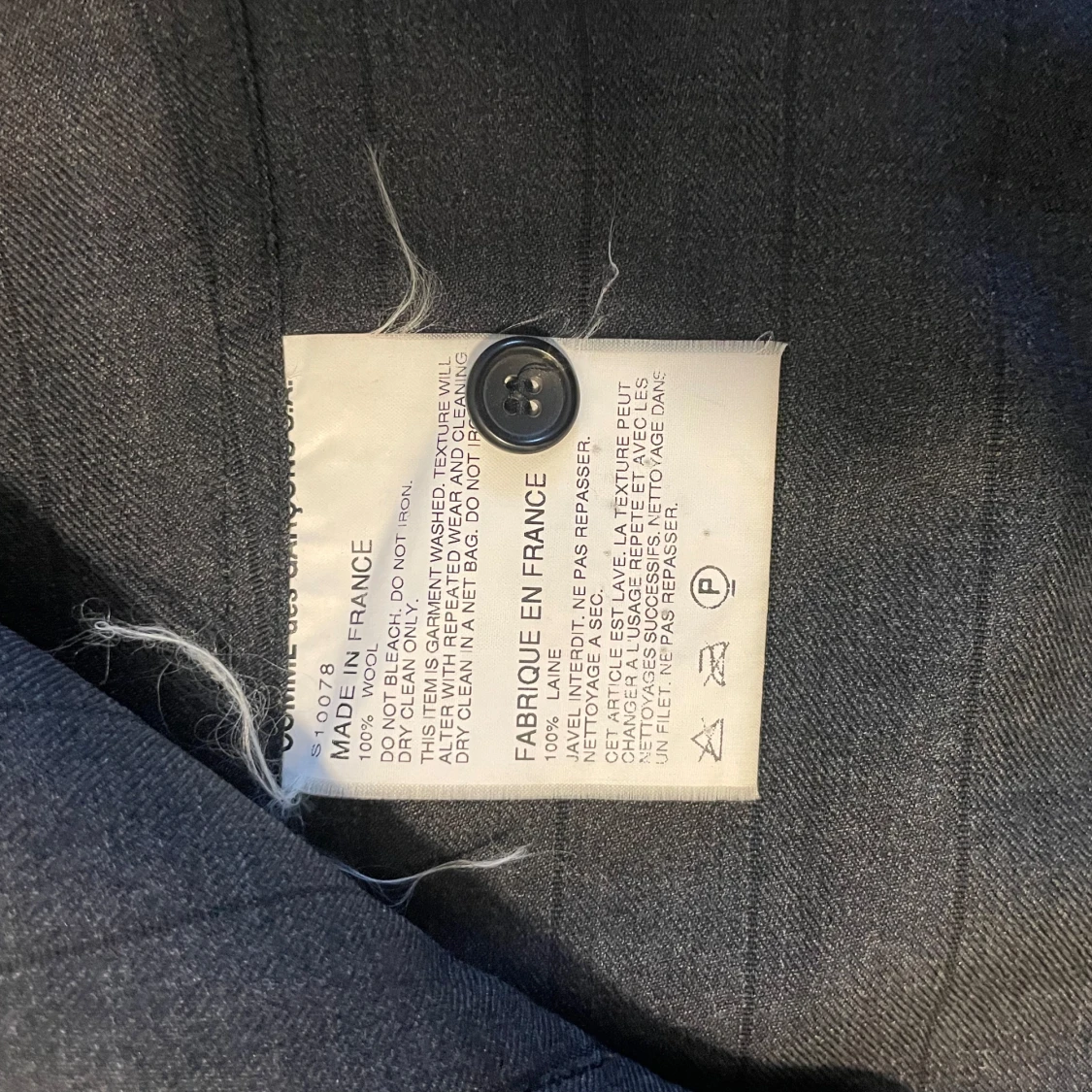 Snygg grå kavaj från Comme des Garçons Shirt. Notch lapel, fyra knappar och fickor. Tillverkad i 100% ull och gjord i Frankrike. Kan användas både som blazer och jacka. Skriv gärna frågor eller bud!