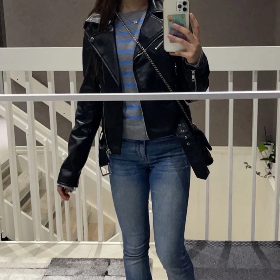 Säljer min skinnjacka i fint nyskick använd fåtal gånger därför säljer jag. Matchar till allt och gör outfiten snyggare!!! Strl S. Nypris:600