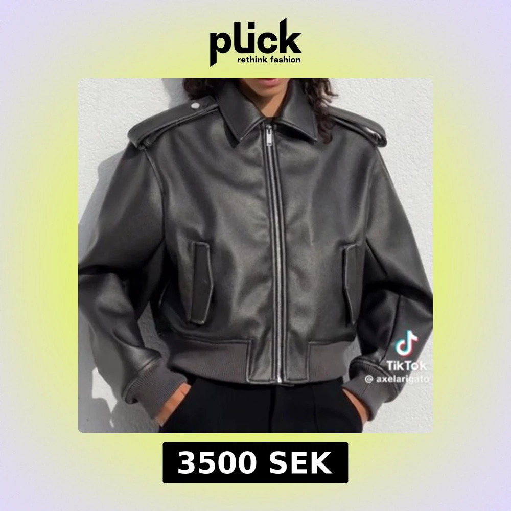 Säljer en svart vegansk skinnjacka från Axel Arigato med oversized passform, markerade axlar och bred krage. Jackan har dragkedja framtill, ribbade muddar och coola detaljer vid axlarna.