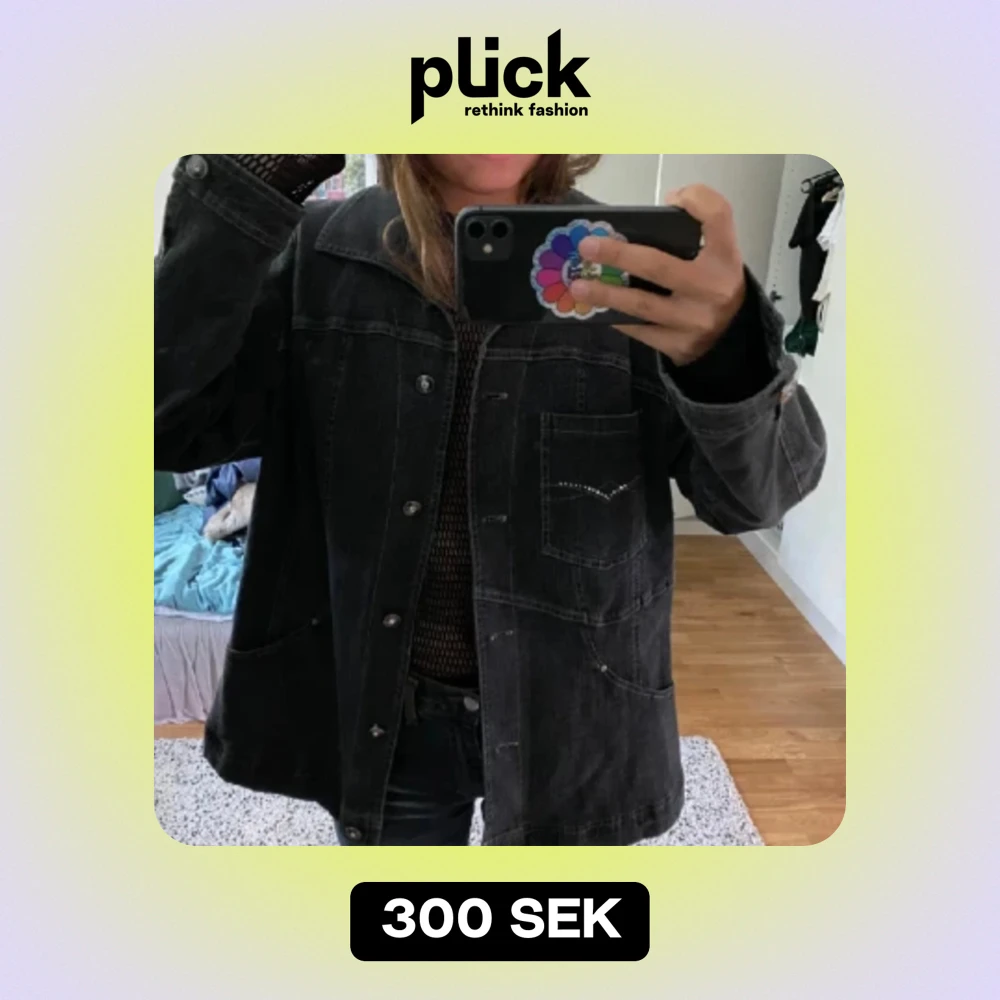 (Lånad bild) Kollar intresse på min sjukt coola grå jeansjacka med detaljer. Köpt här på Plick förra sommaren och nypris är 900kr☺️ hittar inte att det står nån riktig storlek men det kanske är en 38 ish.
