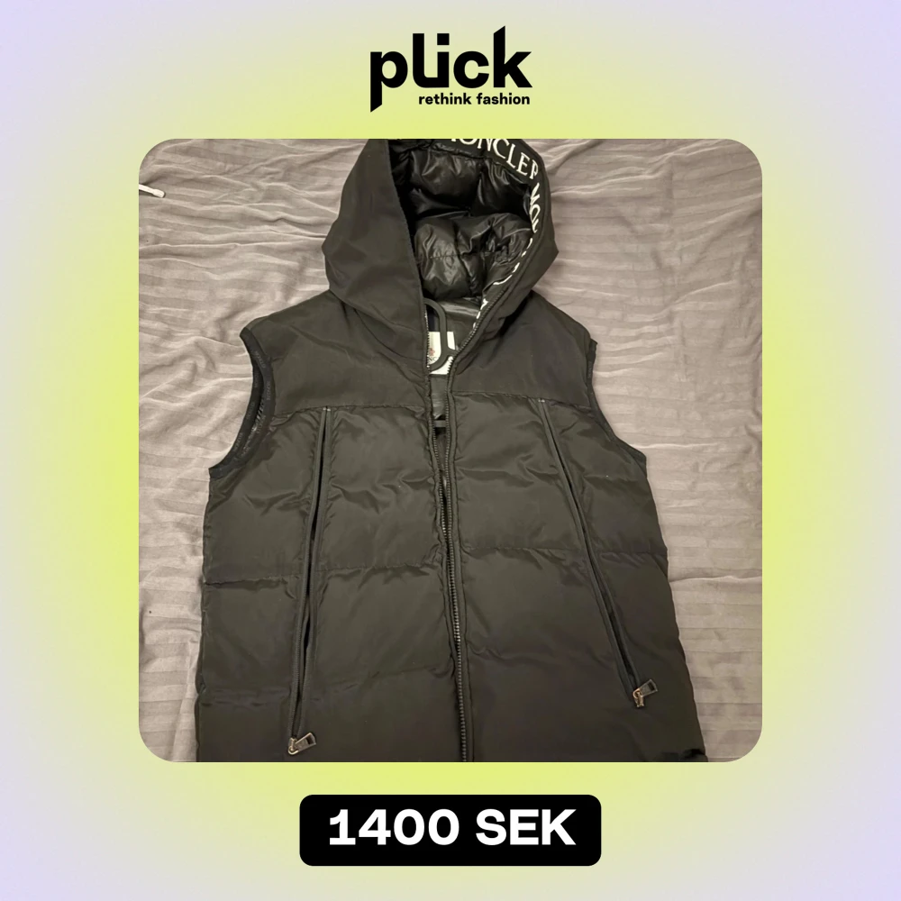 Säljer en snygg svart dunväst från Moncler i mycket bra skick. Västen har en dragkedja framtill och en cool logga på insidan av huvan. Perfekt för höst och vår när du vill hålla dig varm men ändå se stilren ut. Passar både till vardags och fest! Storlek 1 ungefär S-M