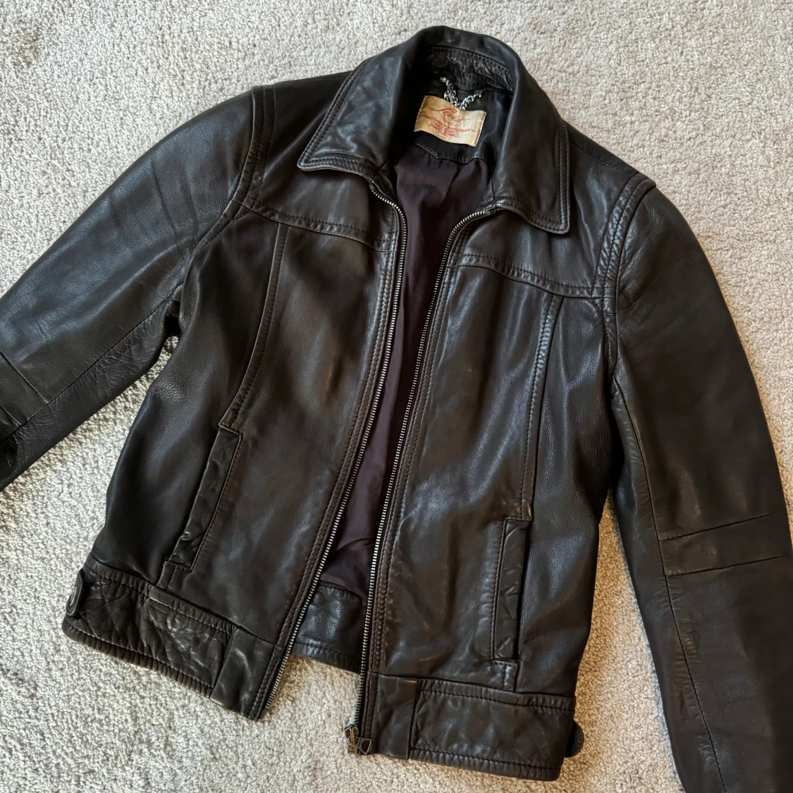 Otroligt cool skinnjacka. Figursydd