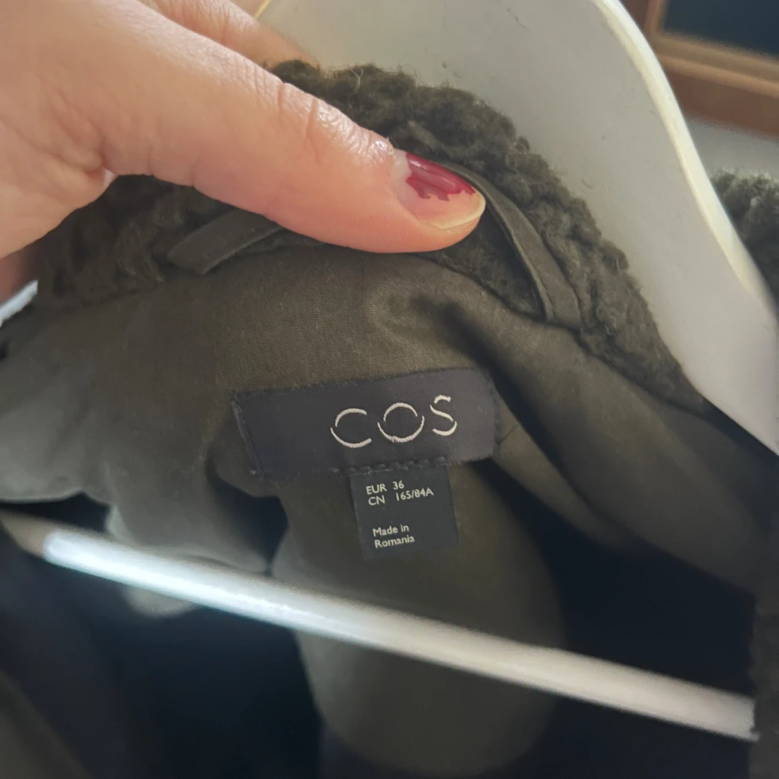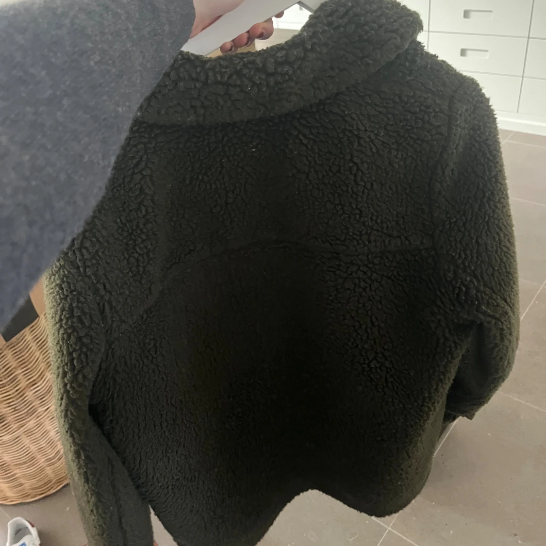 Mysig olivgrön teddyjacka från COS i storlek 36. Jackan har en klassisk krage, raka ärmar och stängs med knappar framtill. Tillverkad i ett fluffigt teddy-material som håller dig varm under kyliga dagar. Perfekt för dig som gillar en stilren och trendig look.