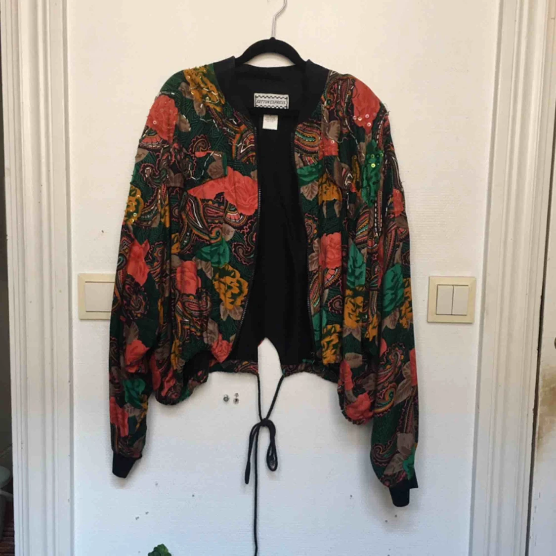 Underbar bomberjacka med pärlor och paljetter övertill, köpt av en vän. OBS! Trådig på många ställen kring axlarna. Möts upp i centrala stockholm annars tillkommer frakt 🌸