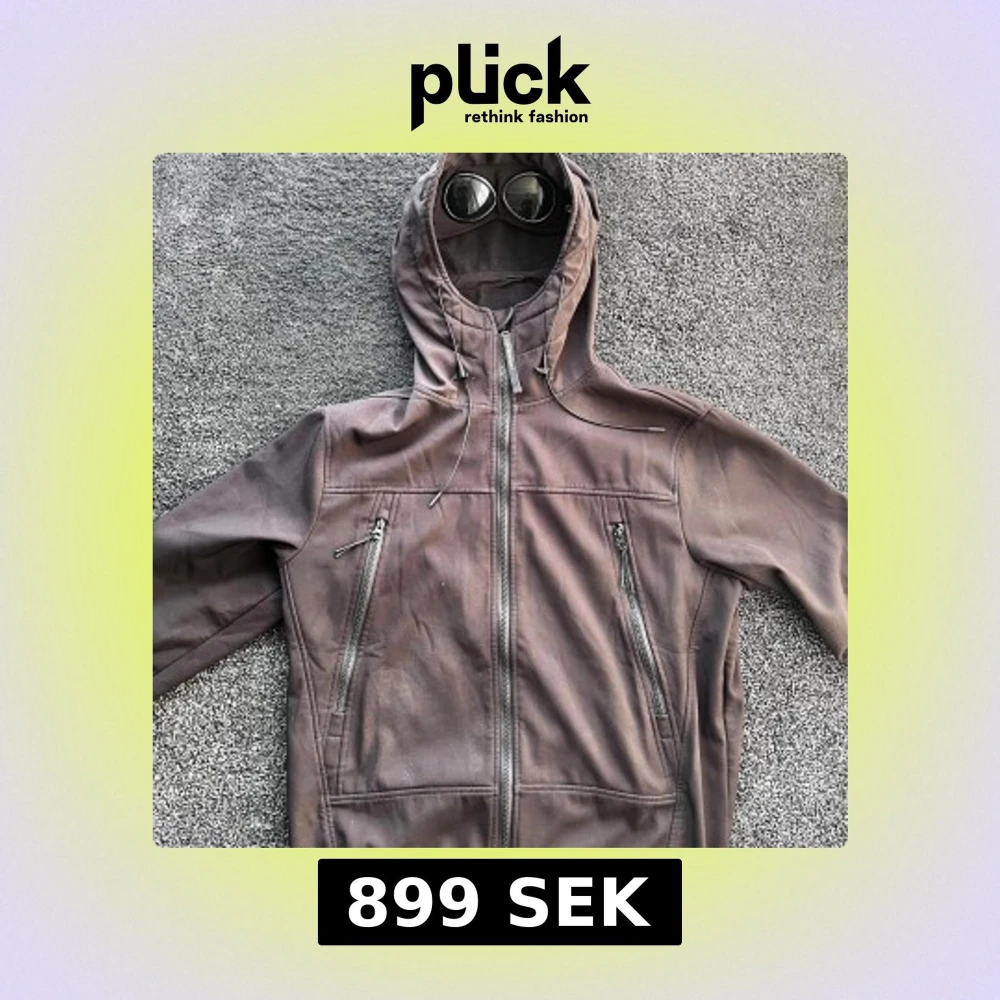 Säljer en brun Goggle Jacket från C.P. Company med ikoniska glasögon i huvan. Jackan har dragkedja framtill, två snedställda bröstfickor med dragkedja och justerbar huva med snörning. Ser brun ut på bilderna men är svart, Storlek L, skick 9/10, qr koden ör avklippt av förra ägaren så kan ej garantera äktahet därav priset. Pris går att diskutera✅