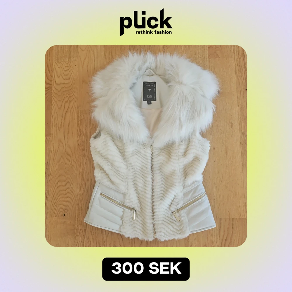Säljer en superfin cremefärgad pälsväst från Guess i mycket bra skick. Västen har en fluffig krage och dragkedjor framtill. Perfekt för höst och vinter för att hålla sig varm och stilren. Passar både till vardags och festliga tillfällen.
