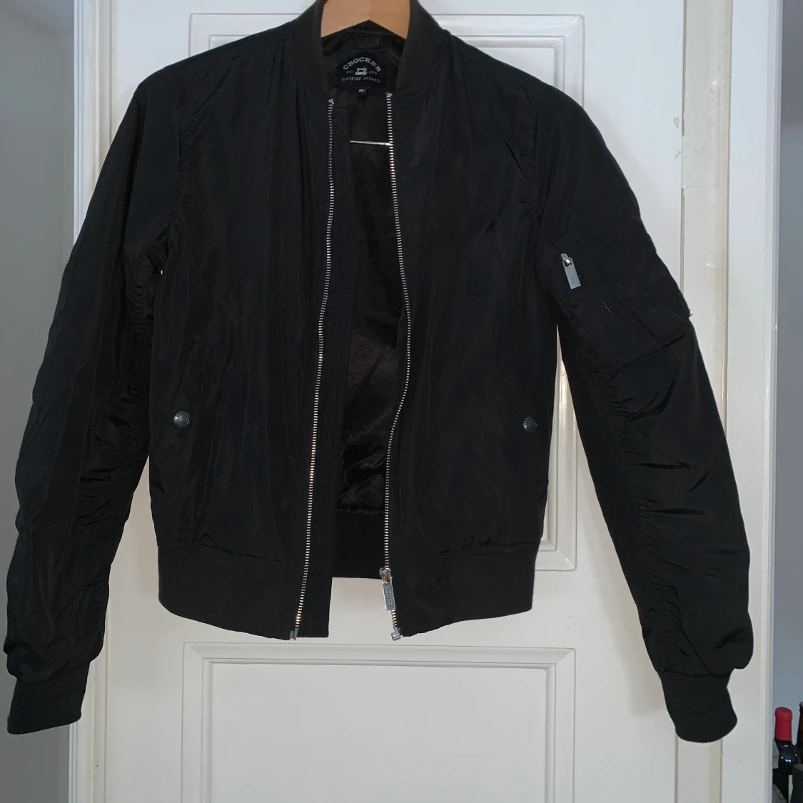 Bomberjacka från Crocker, använd fåtal gånger. Fint skick, storlek xxs ( ja brukar ha s)