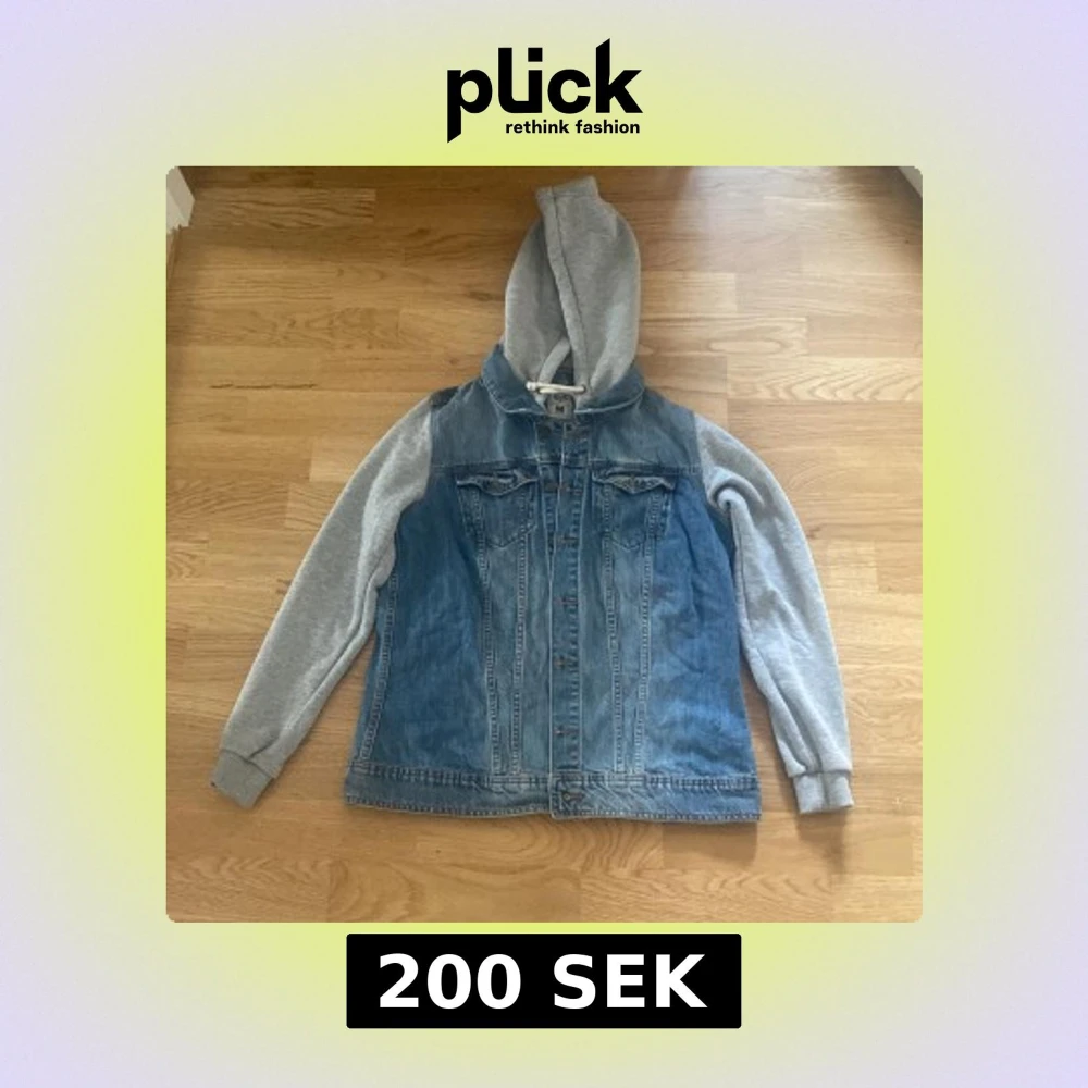 Snygg jeansjacka från Crocker i mediumblå denim med grå sweatshirt-ärmar och huva. Jackan har knappar framtill, två bröstfickor med lock och dragsko i huvan. Perfekt för dig som gillar streetstyle och vill ha en chill look.
