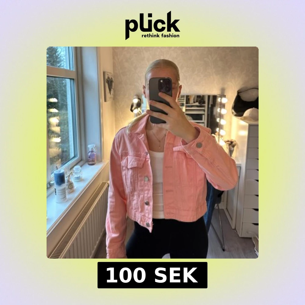 Snygg croppad jeansjacka i ljusrosa/skrikrosa från Gina Tricot. Jackan har klassisk krage, två bröstfickor med lock och silverfärgade knappar framtill. Tight modell. Perfekt att slänga över en t-shirt för en chill look. Långärmad och med skön passform.