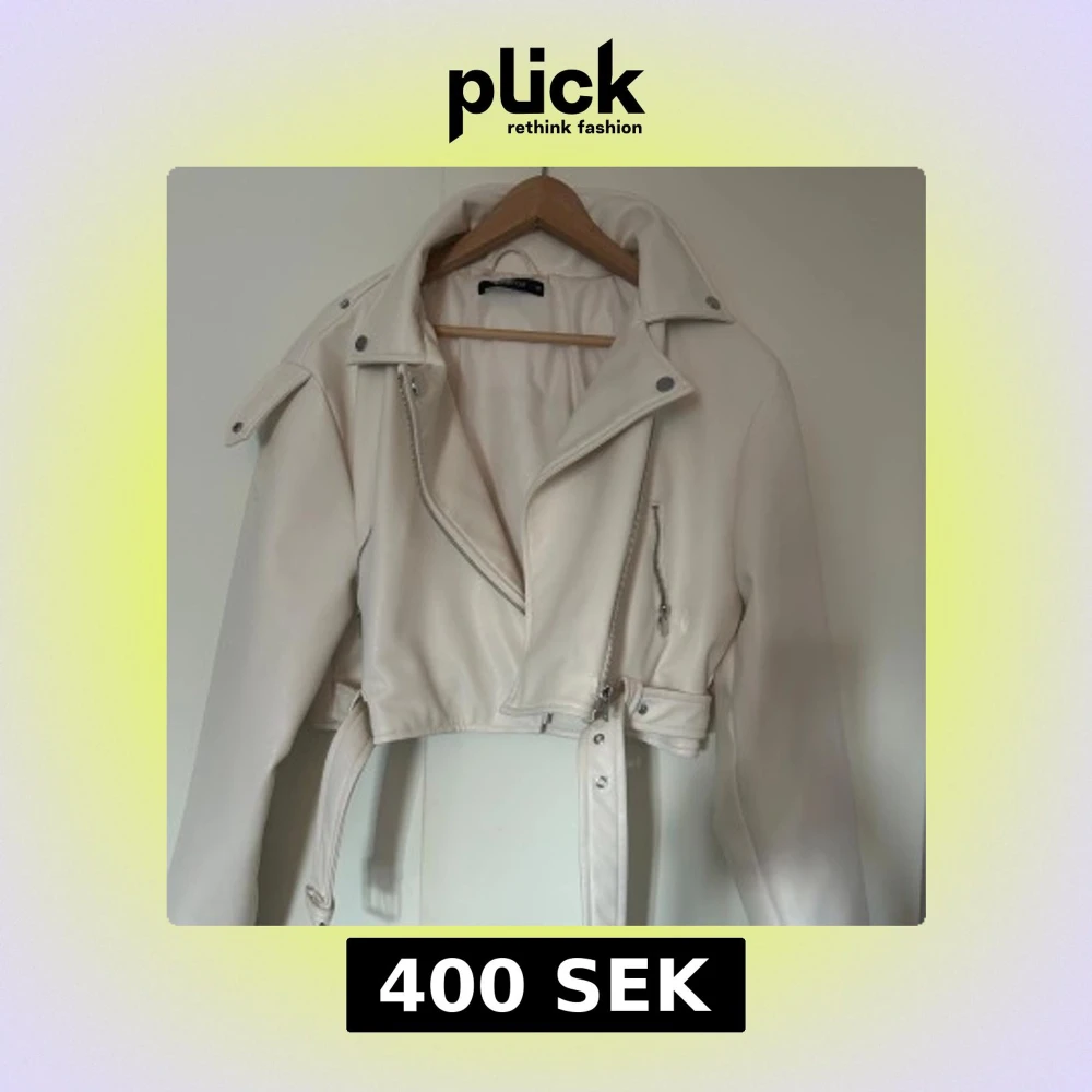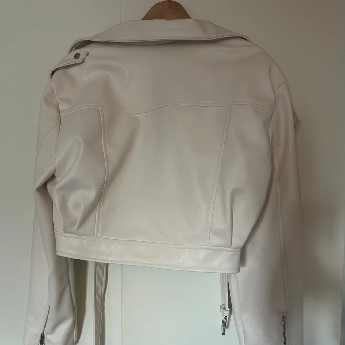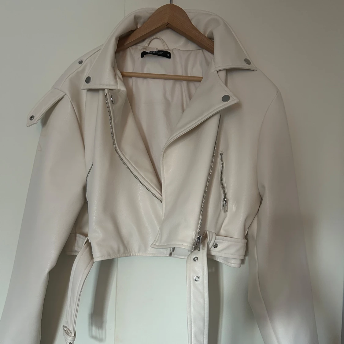 Croppad krämvit skinnjacka från Gina Tricot, storlek xs