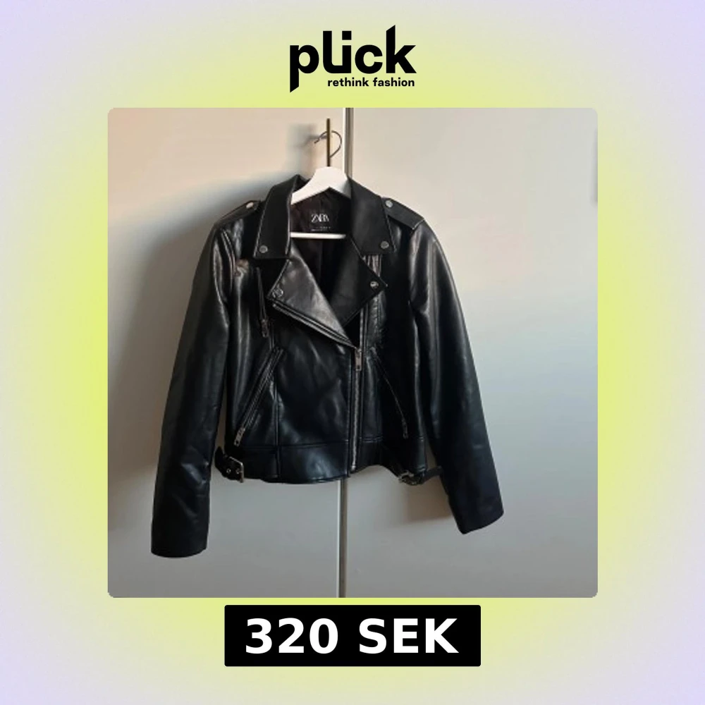 Säljer en svart skinnjacka från Zara. Nyskick. Storlek L. Köpt för 599kr säljer för endast 320kr! Priset kan diskuteras!