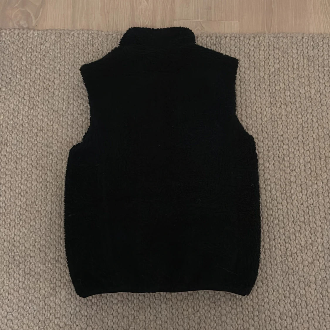 Säljer en marinblå teddyväst från Cubus. Västen har en dragkedja framtill och en hög krage för extra värme. Perfekt för kyliga dagar när du vill hålla dig varm och bekväm.