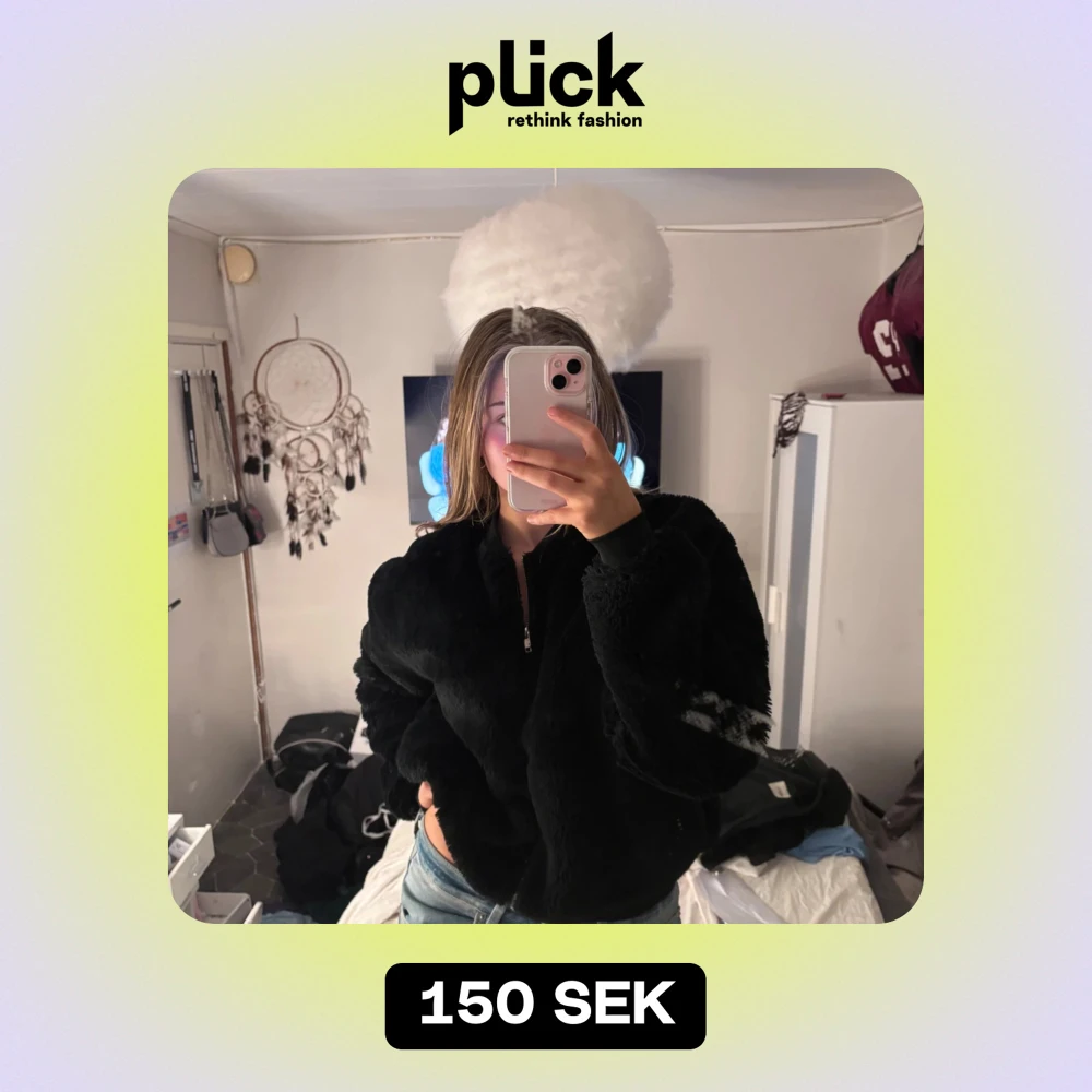 Mysig svart pels jacka i mycket bra skick. Perfekt för kyliga höst- och vinterdagar. Jackan har en dragkedja framtill och långa ärmar. Den är både stilren och bekväm, vilket gör den idealisk för vardagsbruk. Passar perfekt till jeans eller leggings för en avslappnad look.