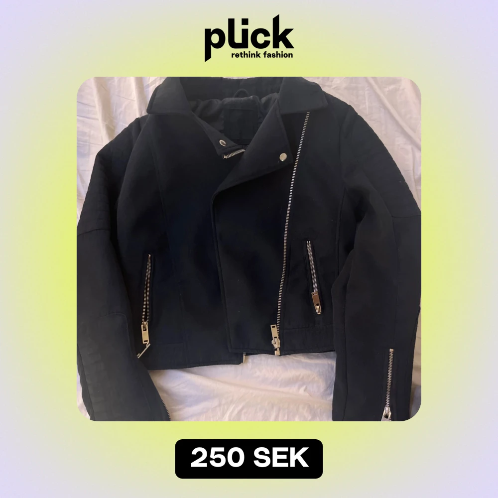 Snygg svart jacka med asymmetrisk dragkedja och flera dragkedjedetaljer. Jackan har en klassisk krage och är perfekt för en edgy look. Passar bra till både jeans och klänning.