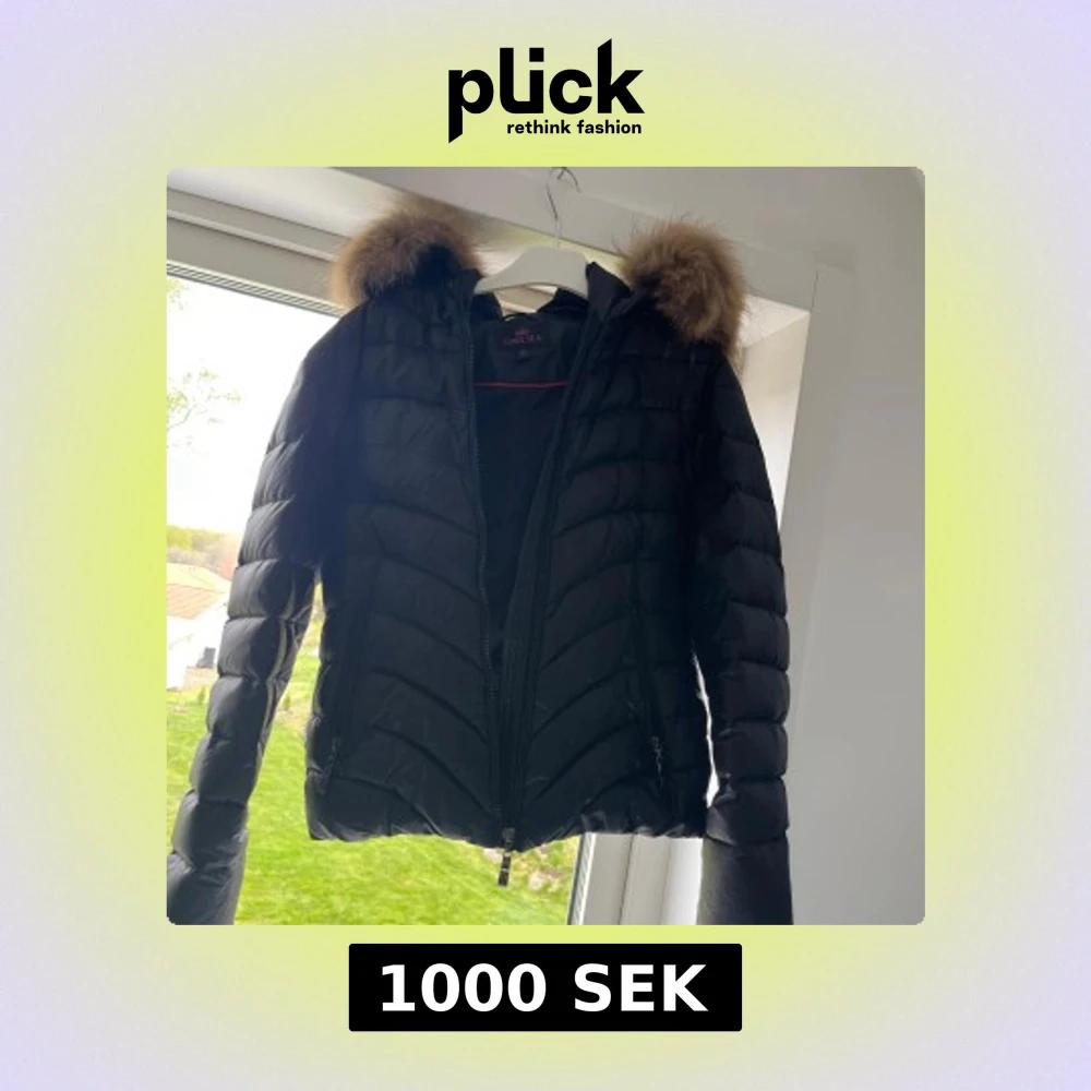 Säljer en svart dunjacka från Chelsea med huva och fuskpäls. Jackan har dragkedja framtill och två fickor med dragkedja. Snyggt quiltad design och långärmad modell. Perfekt för kyliga dagar.