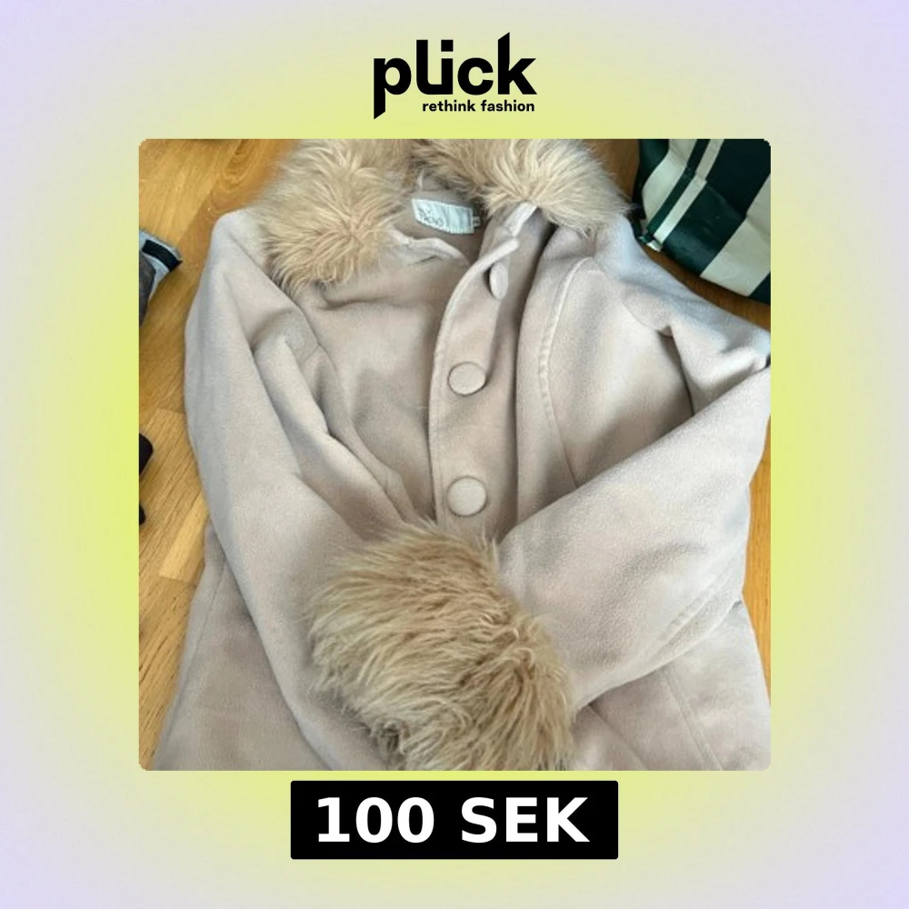 Säljer en beige kappa från NLY Trend med stora knappar framtill och mjuk fuskpäls vid krage och ärmslut. Klassisk och stilren modell som passar perfekt till kyligare dagar.