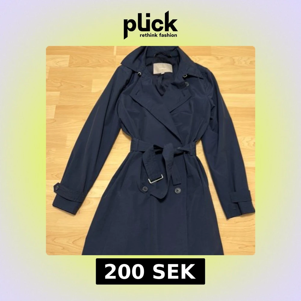 Stilren mörkblå trenchcoat från InWear med klassisk krage och knytskärp i midjan. Jackan har långa ärmar, knappar framtill och bälte för en snygg siluett. Perfekt för vår och höst.