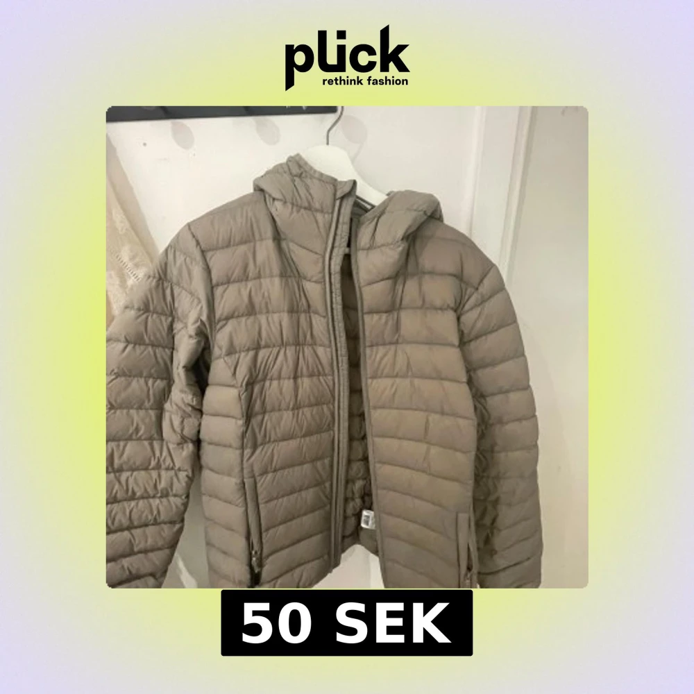 Säljer en beige pufferjacka från Strova i storlek M. Jackan har huva, dragkedja framtill och quiltad design. Perfekt för kyliga dagar och enkel att matcha med olika outfits.
