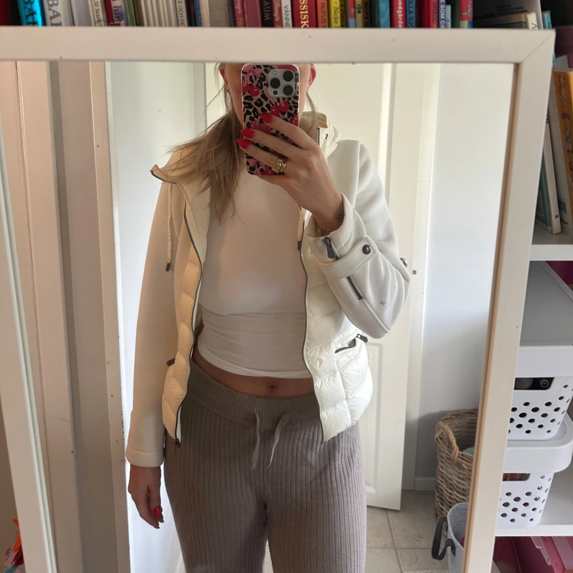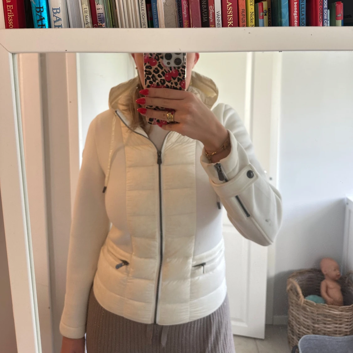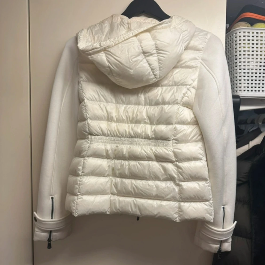 Säljer en snygg vit pufferjacka från JOTT med huva och dragkedja. Jackan har quiltade partier framtill och baktill, samt två fickor med dragkedja. Ärmarna är släta och har dragkedjedetaljer vid handlederna. Perfekt för kyliga dagar.