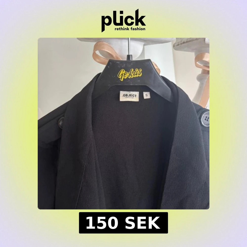 Säljer en svart trenchcoat från Object i storlek S. Jackan har långa ärmar, bred krage och snygga detaljer vid axlarna. Perfekt för dig som vill ha en stilren och tidlös jacka till garderoben.