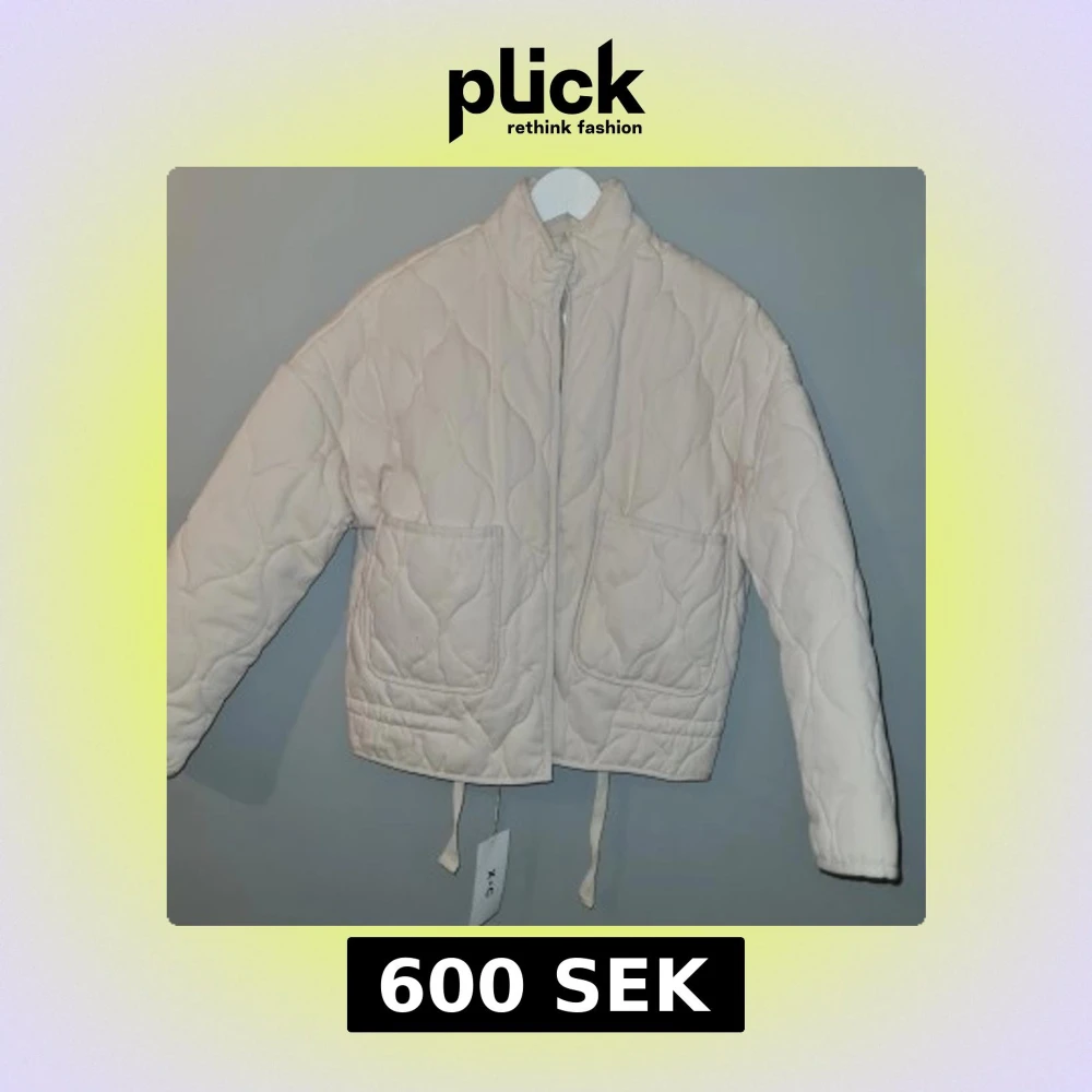 Säljer en beige quiltad jacka med dragkedja och två stora fickor framtill. Jackan är köpt på vinted med varken använde av mig eller förra ägaren.