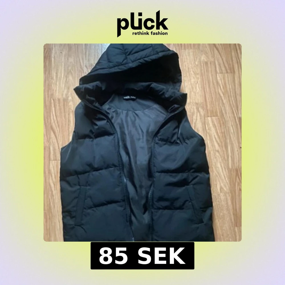 Snygg svart dunväst från Shein med huva och dragkedja. Perfekt för kyligare dagar och enkel att matcha med olika outfits.