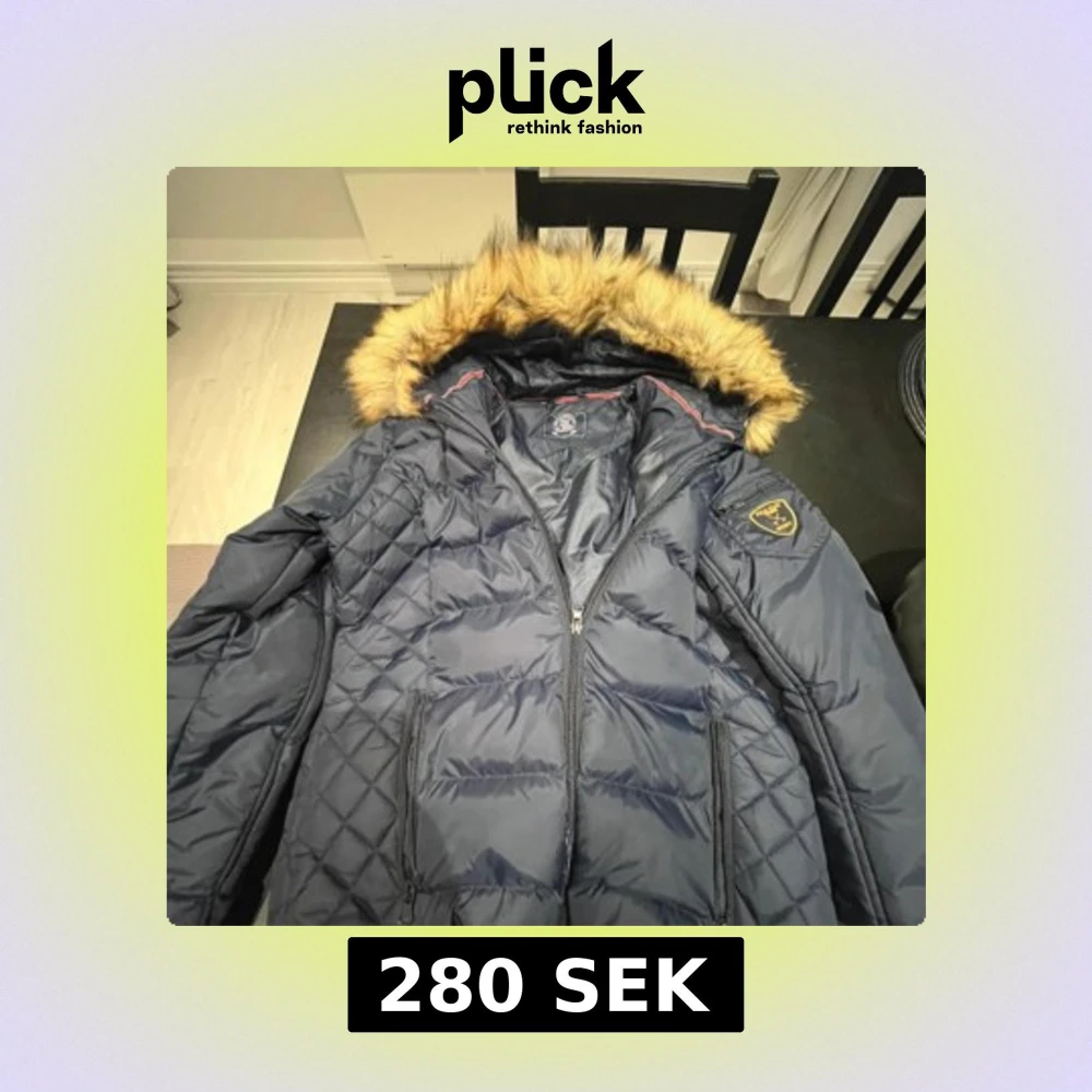Säljer en mörkblå pufferjacka från Vinson Polo Club med avtagbar huva och fuskpäls. Jackan har dragkedja framtill, två fickor med dragkedja och en extra ficka på ärmen. Perfekt för kyliga dagar!